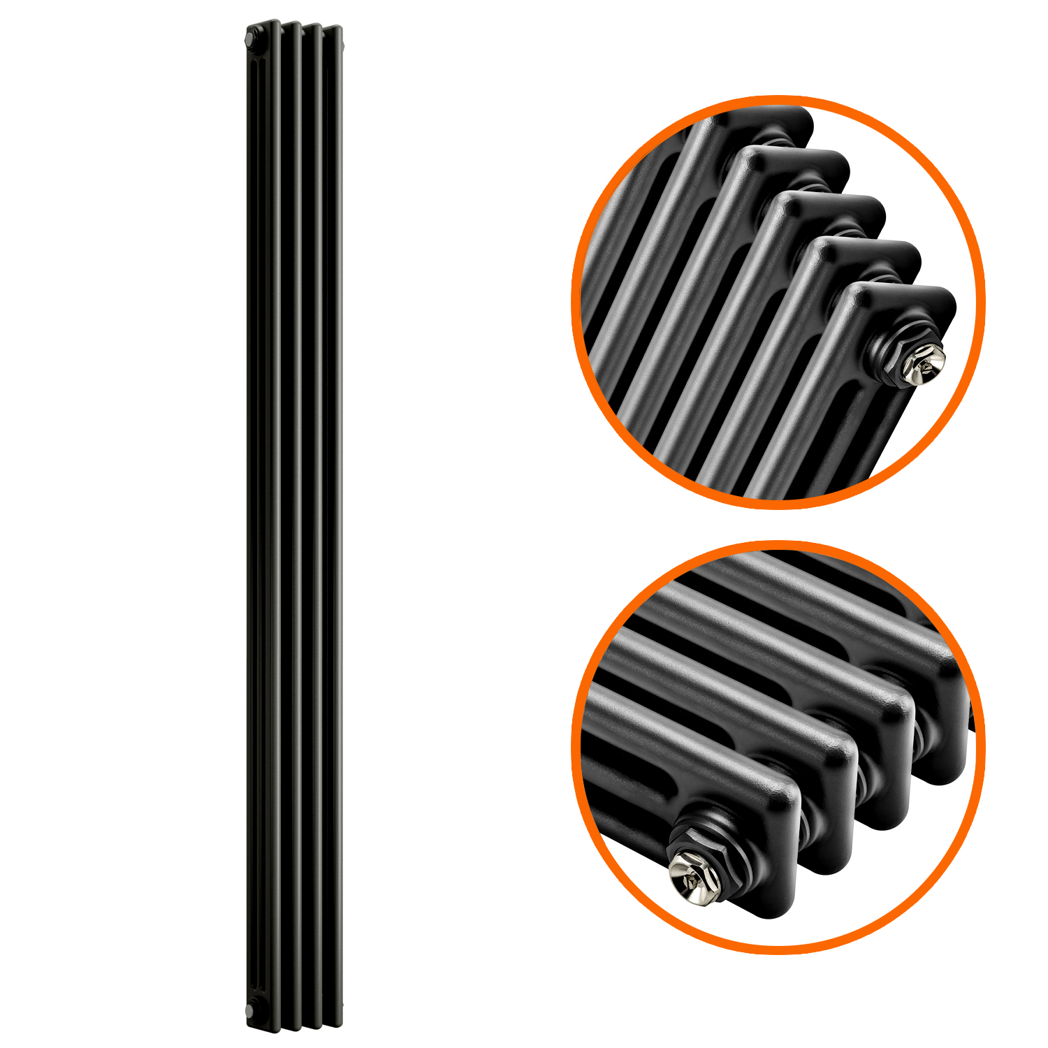 This column radiator is the three-column variant and ideal for heating up larger sized areas effectively. The radiators black textured finish compliments both period and modern décor perfectly.
