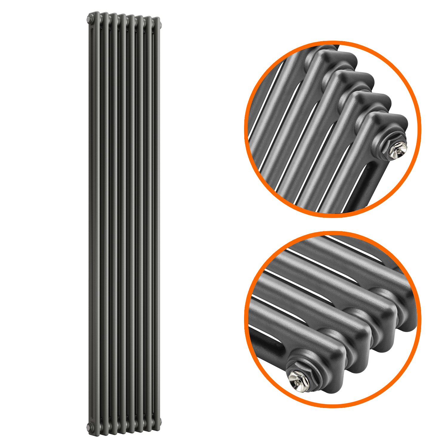 1500 x 383mm Anthracite Vertical Traditional 2 Column Radiator
