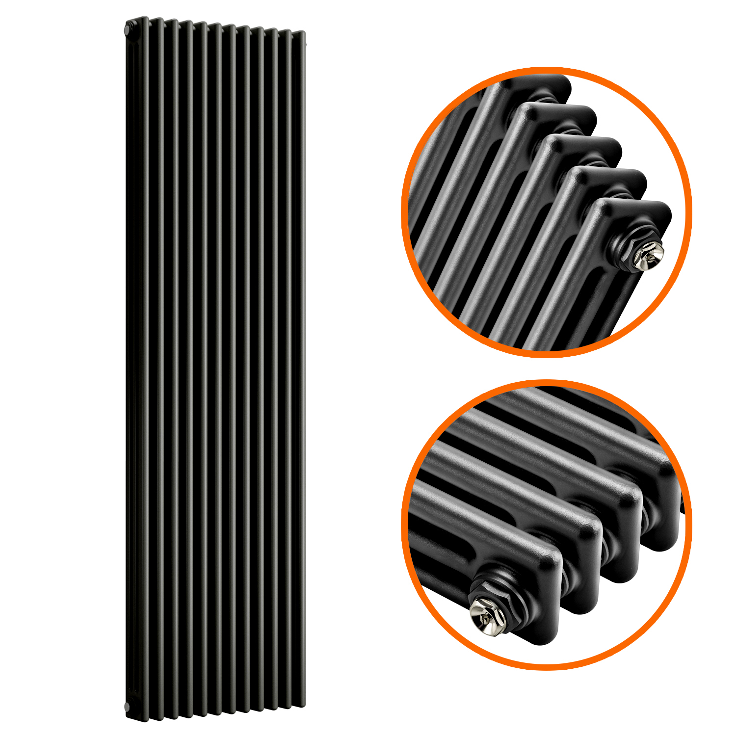 This column radiator is the three-column variant and ideal for heating up larger sized areas effectively. The radiators black textured finish compliments both period and modern décor perfectly.