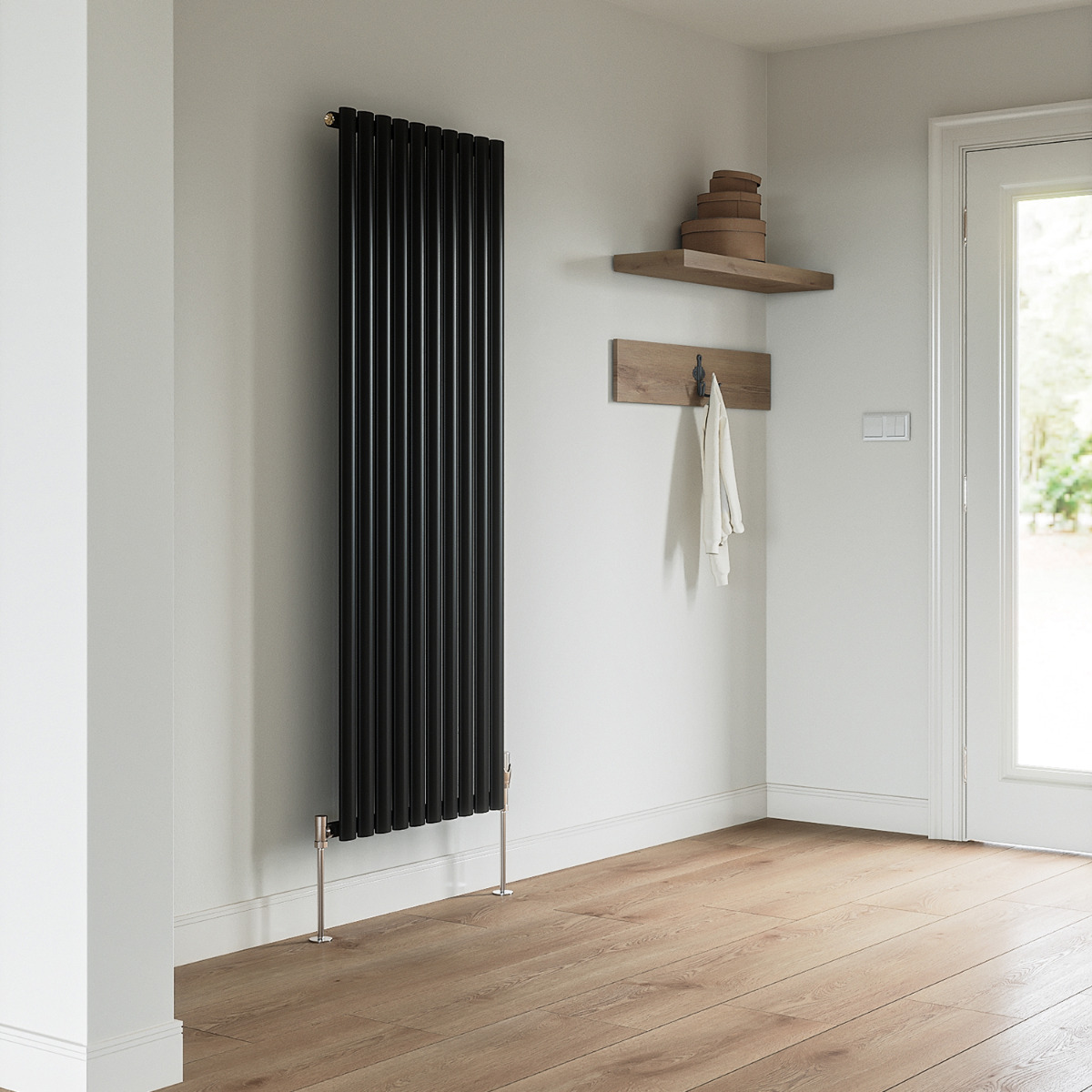 Create a warm feel to your home with these designer 1600 x 590mm black oval tube radiators. Creating a modern feel to any room in your home with its beautiful, designer look.