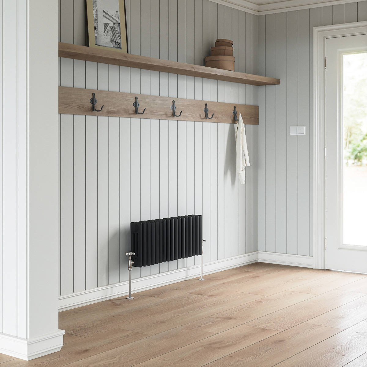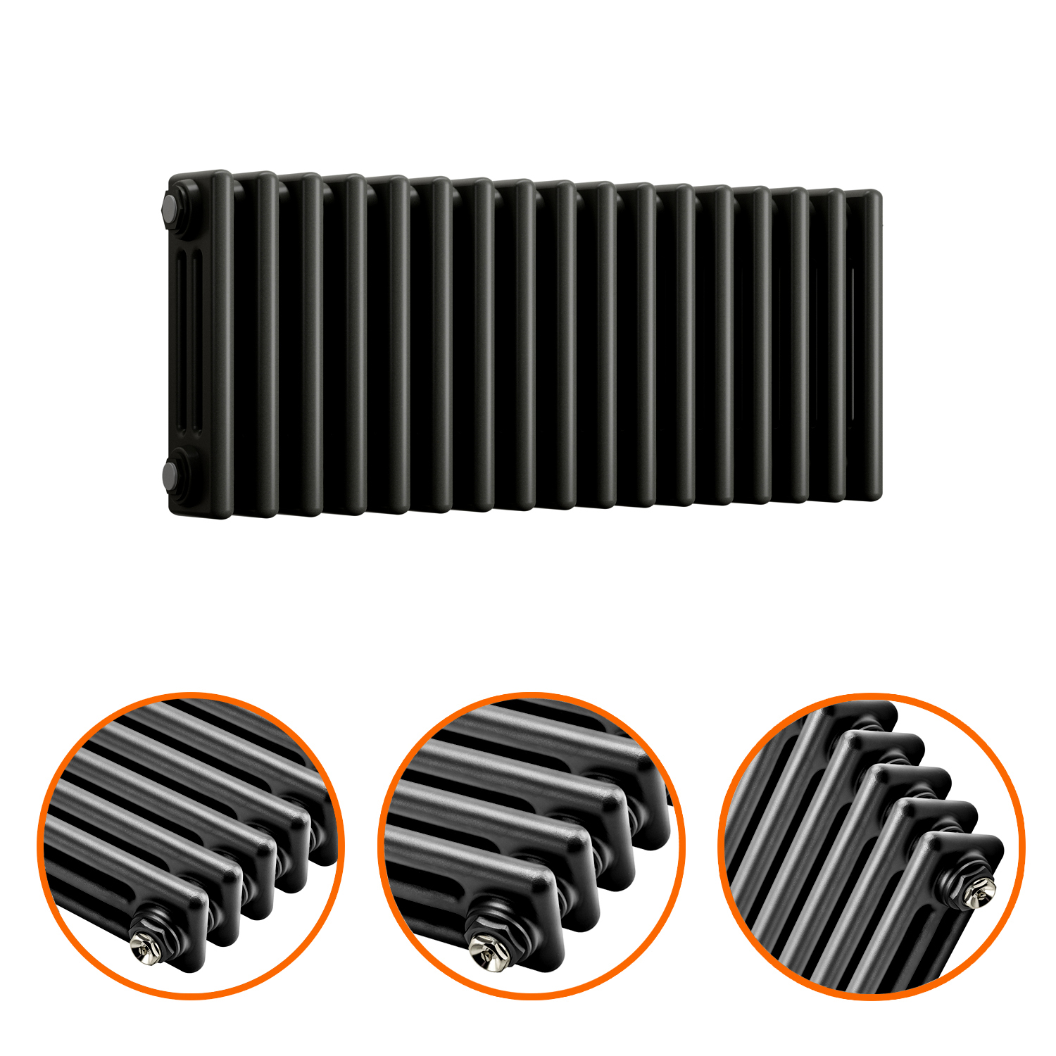 This column radiator is the three-column variant and ideal for heating up larger sized areas effectively. The radiators black textured finish compliments both period and modern décor perfectly.
