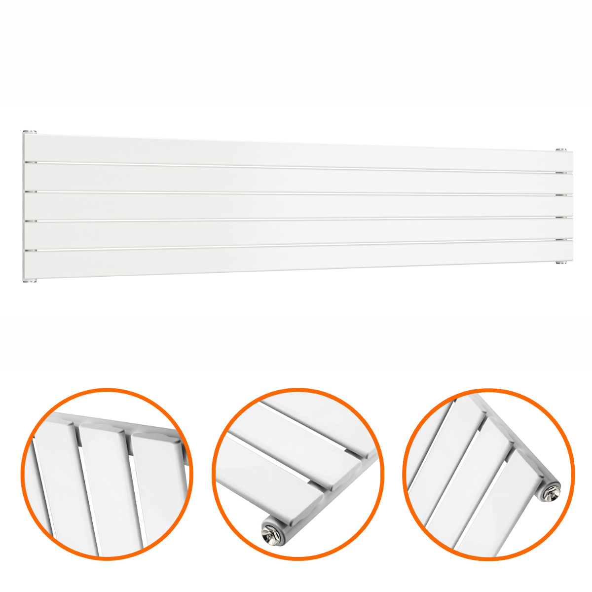 These 350mm x 1780mm horizontal flat panel designer radiators are an excellent and affordable way to add both warmth and style to your home. The radiators are manufactured to the highest possible standards using premium quality mild steel which ensures reliability and provides an impressive heat output of 2453 BTU's.