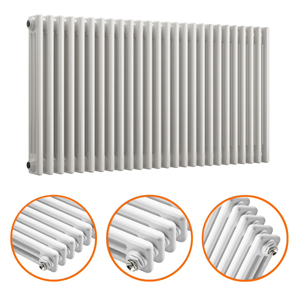 600 x 1193mm White Horizontal Traditional 3 Column Radiator