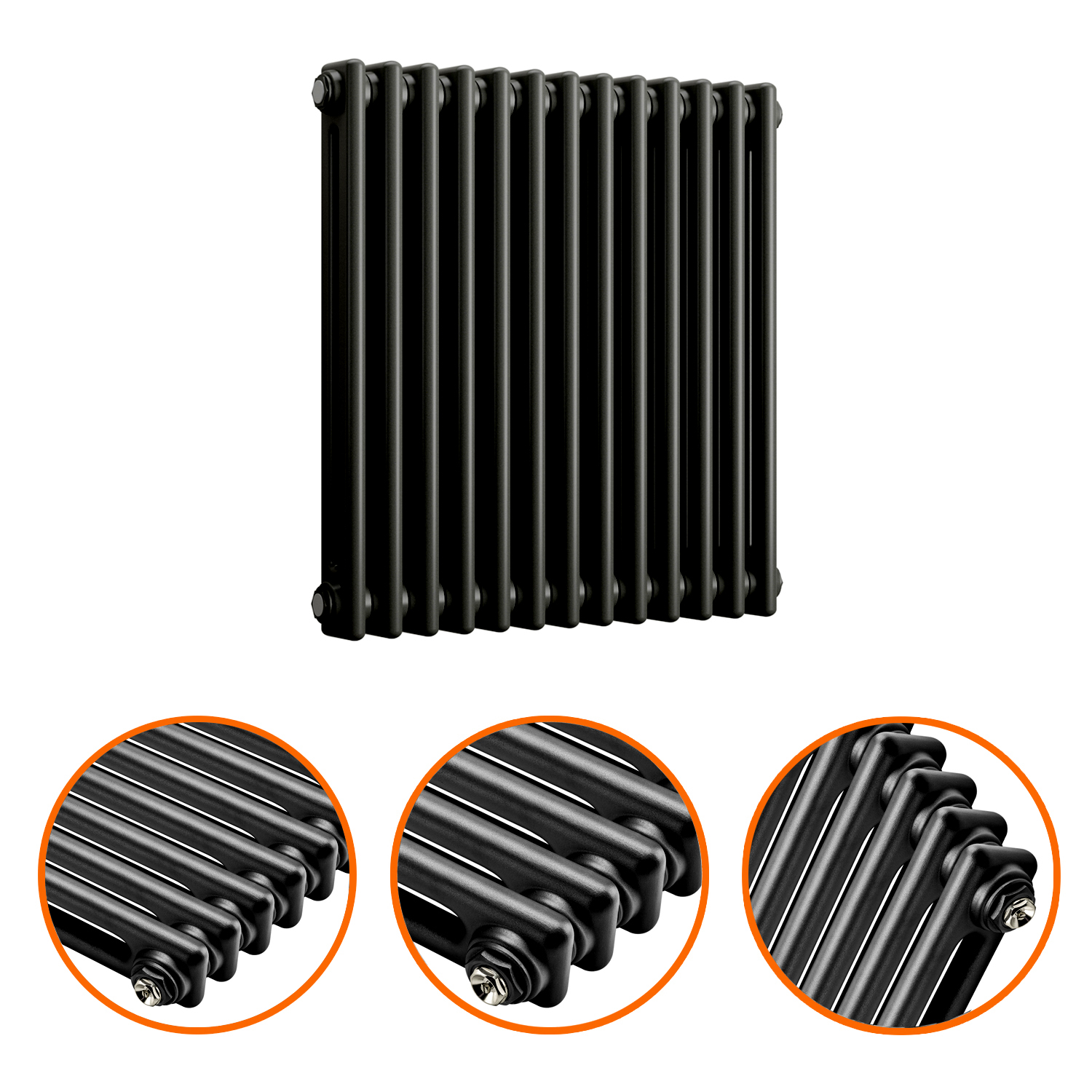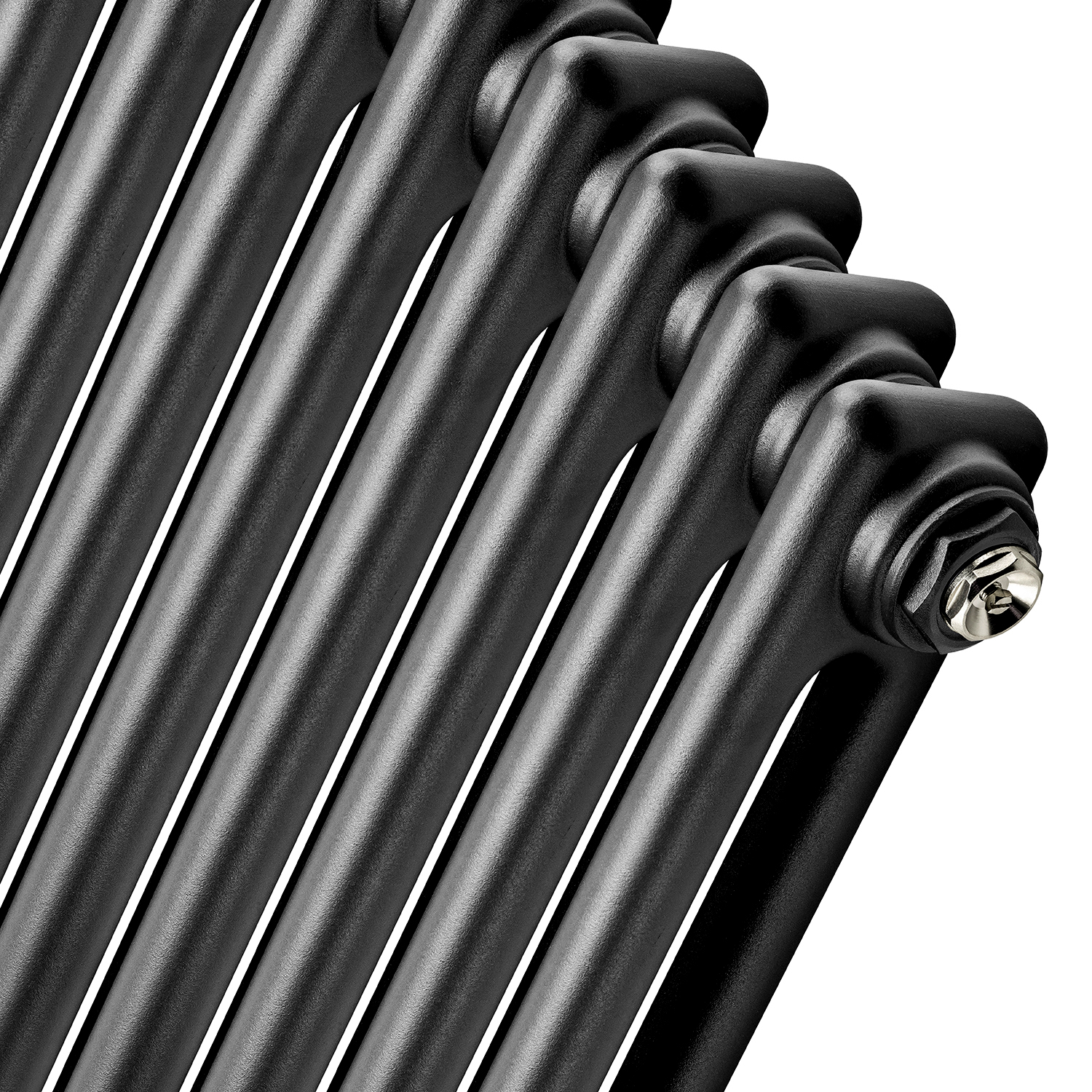 This column radiator is the two-column variant and ideal for heating up medium sized areas effectively. The radiators black textured finish compliments both period and modern décor perfectly.