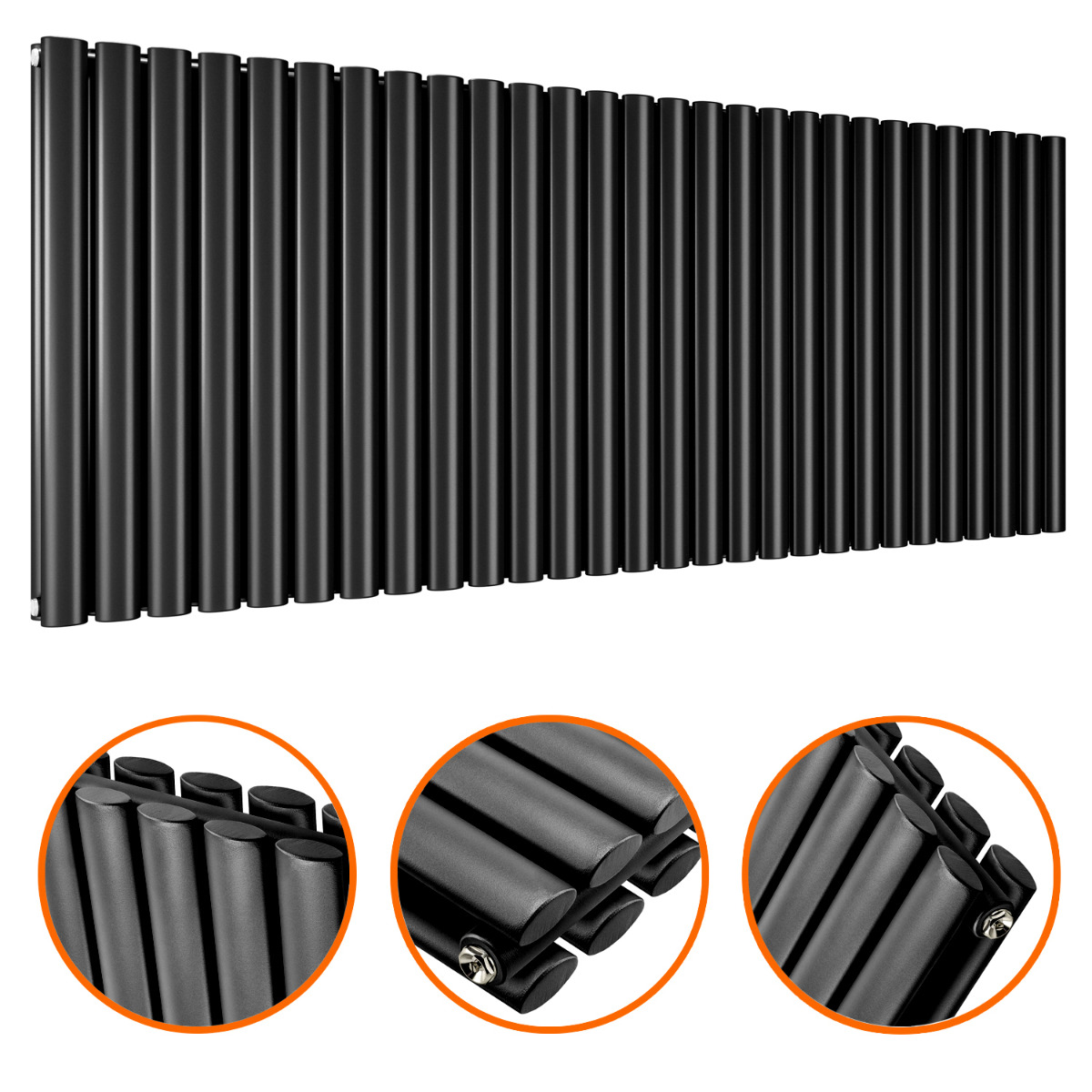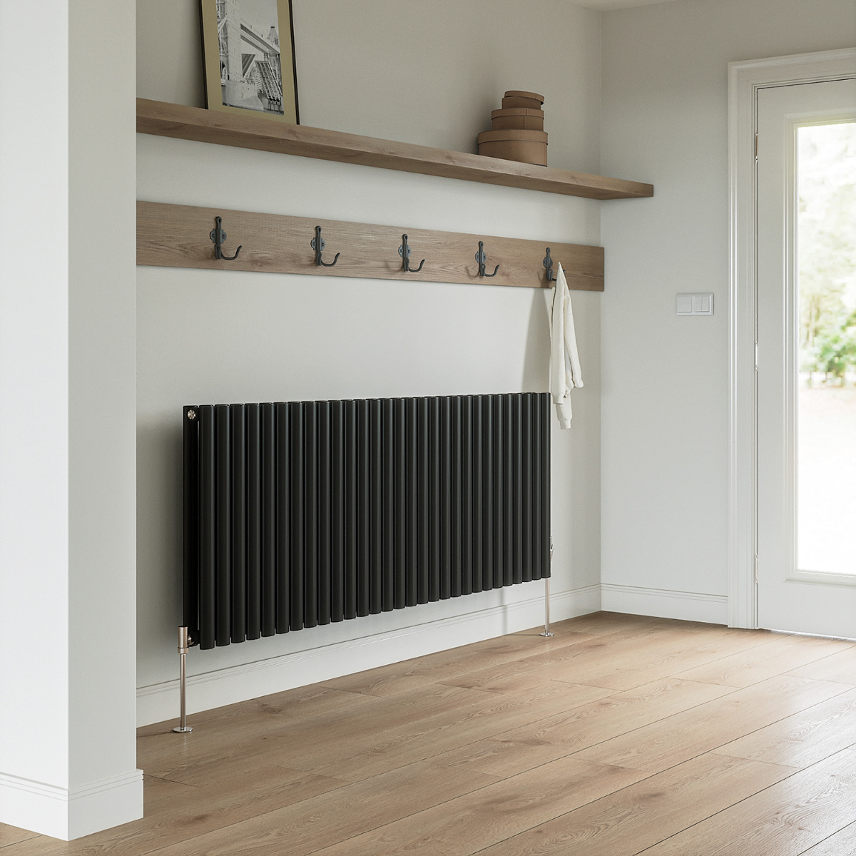 Give your home a warm feel with these designer 635 x 1652mm double panel black oval tube radiators. With designer radiators like ours, your room will feel a lot warmer and create a modern designer look.
