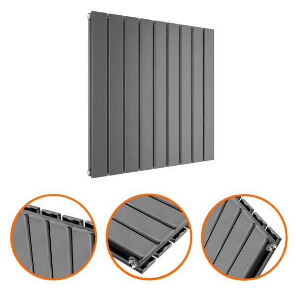 Bring warmth to your home with our designer 635 x 630mm double flat anthracite horizontal panel radiators. Modern radiators from Radiator Outlet will make your rooms will feel a lot warmer during the colder months with a sleek look also.