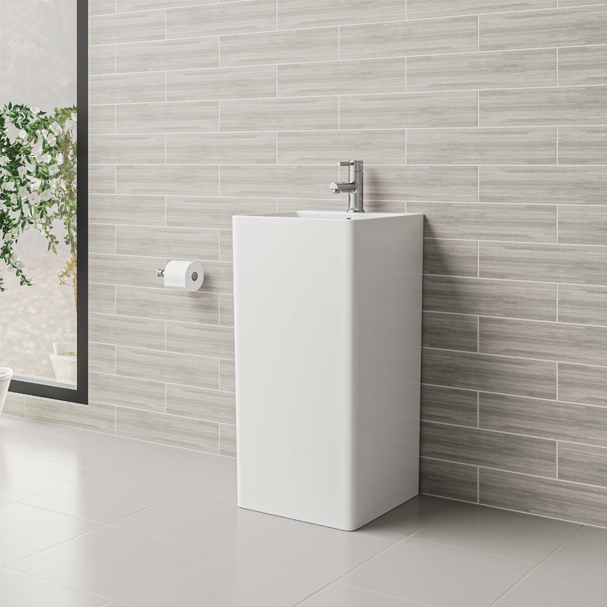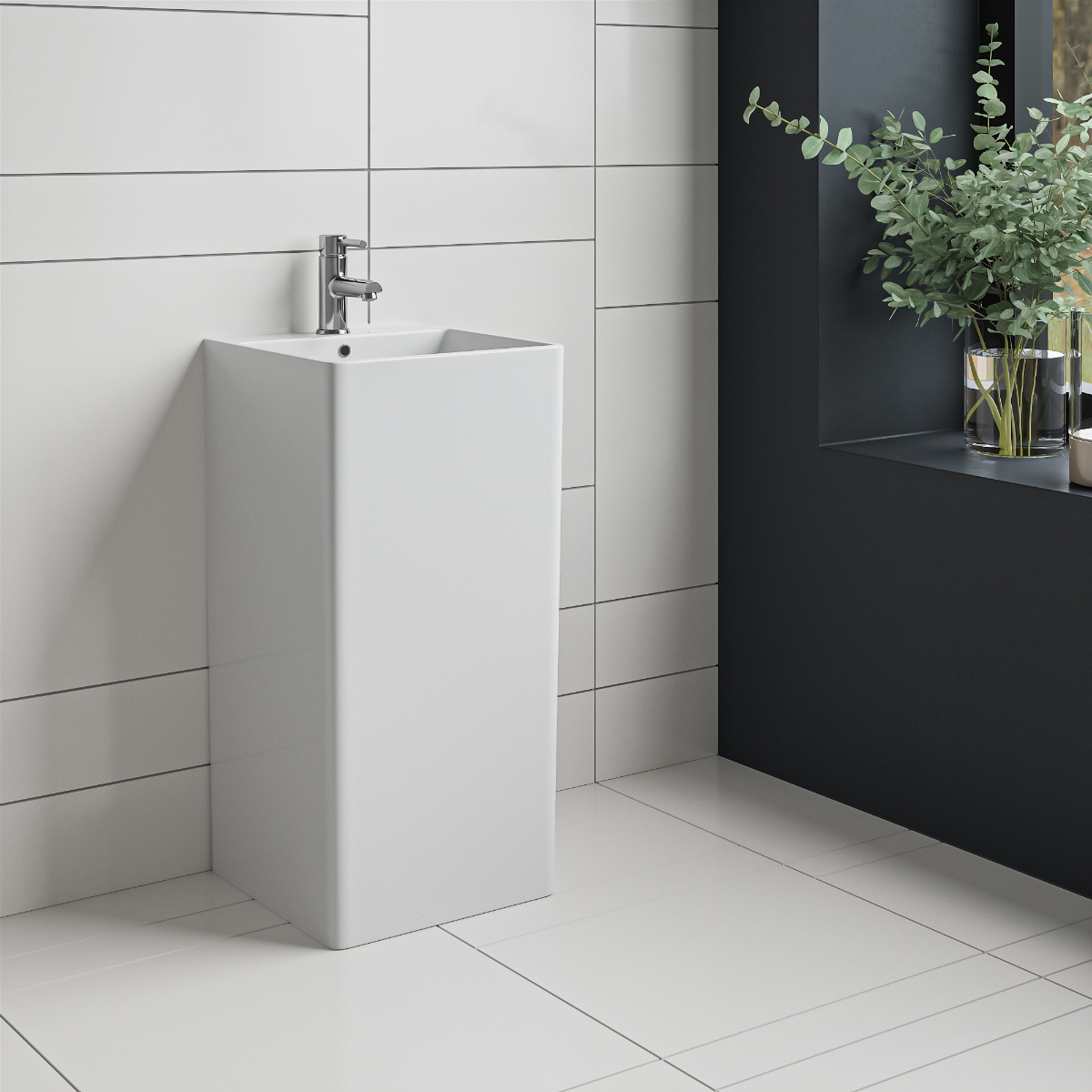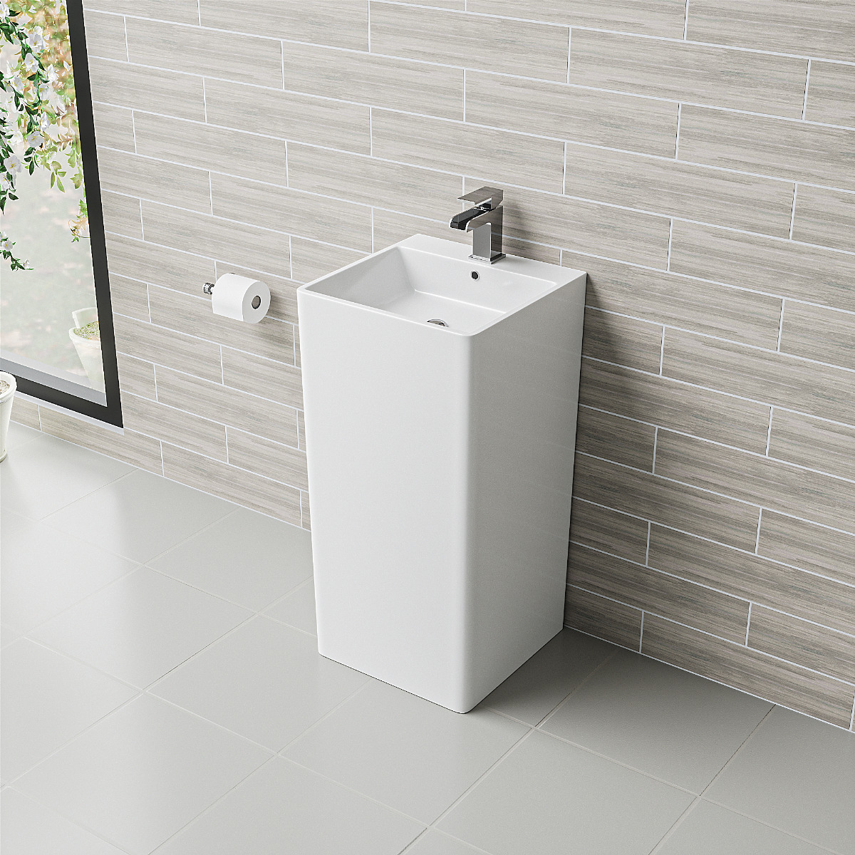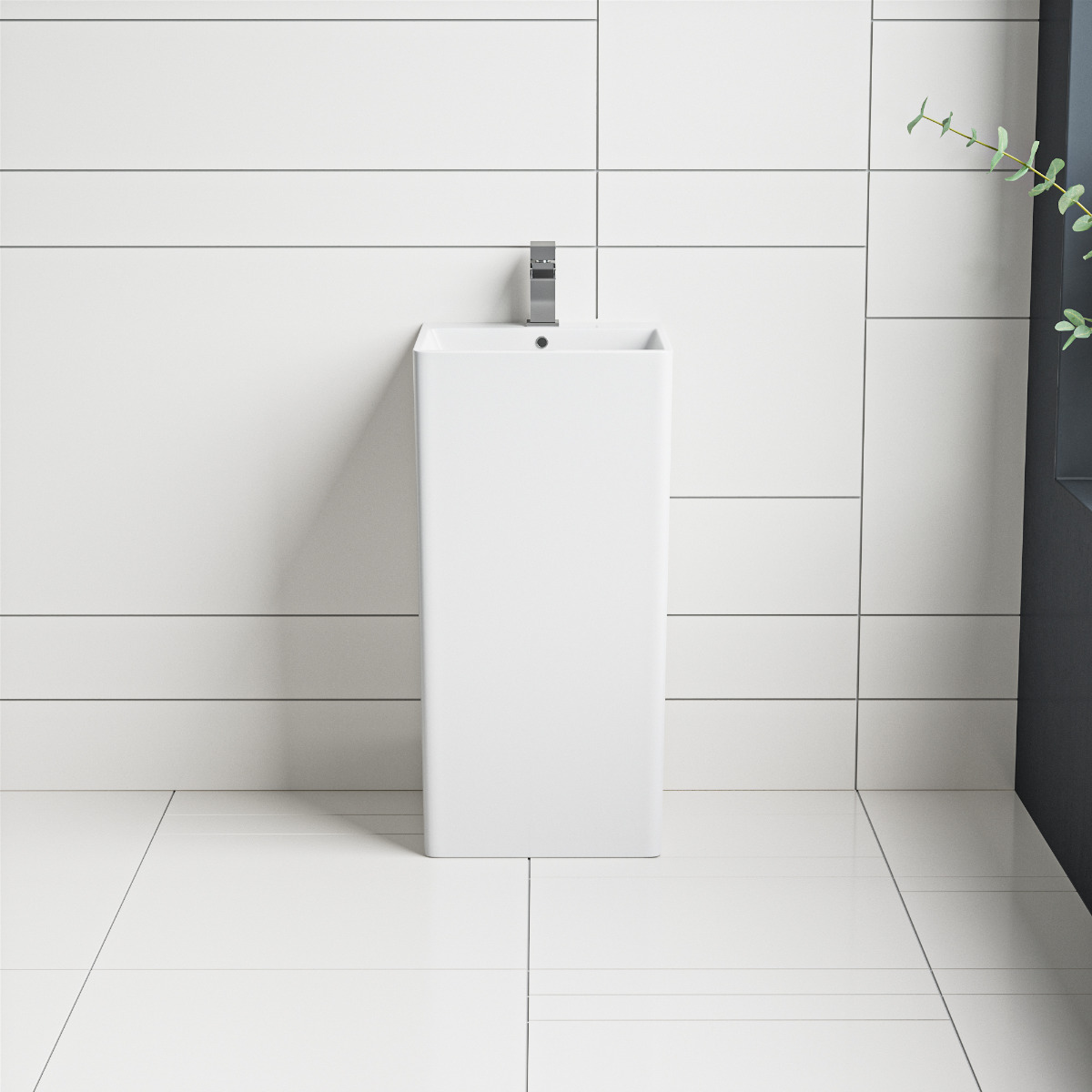 Stand out from the crowd with this stunning unique minimal freestanding pedestal sink, It's luxurious design and commanding presence ensure it's a focal point of your bathroom.