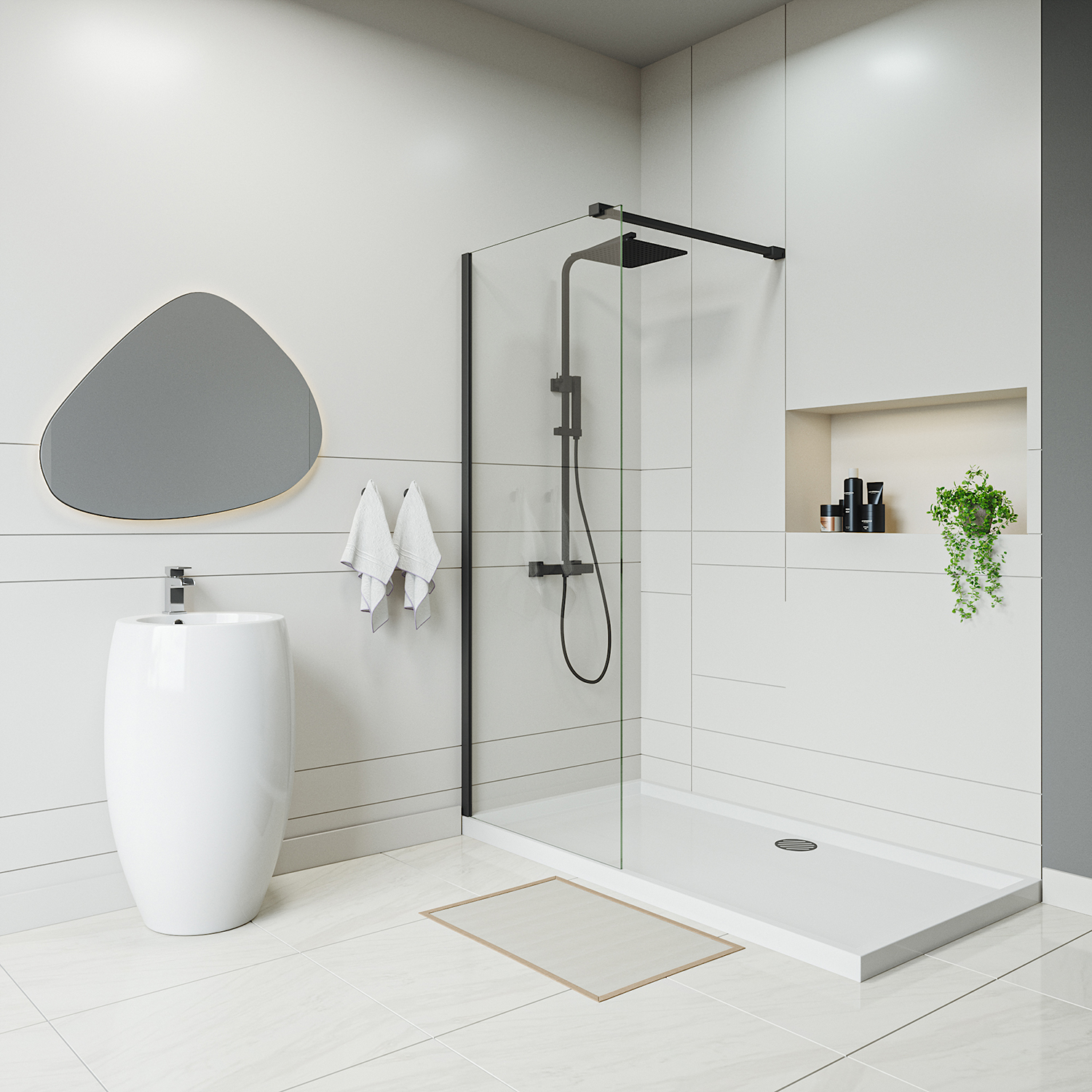 Measuring 2000mm in height, it effectively contains splashes, keeping your bathroom neat and tidy. This 800mm wide option is perfect for smaller spaces, the screen can be combined with a shower tray or integrated into a tiled wet room floor. The adjustable stainless steel support arm has a matching matte black finish and can be easily trimmed down making it compatible for shower trays / spaces of all sizes.
