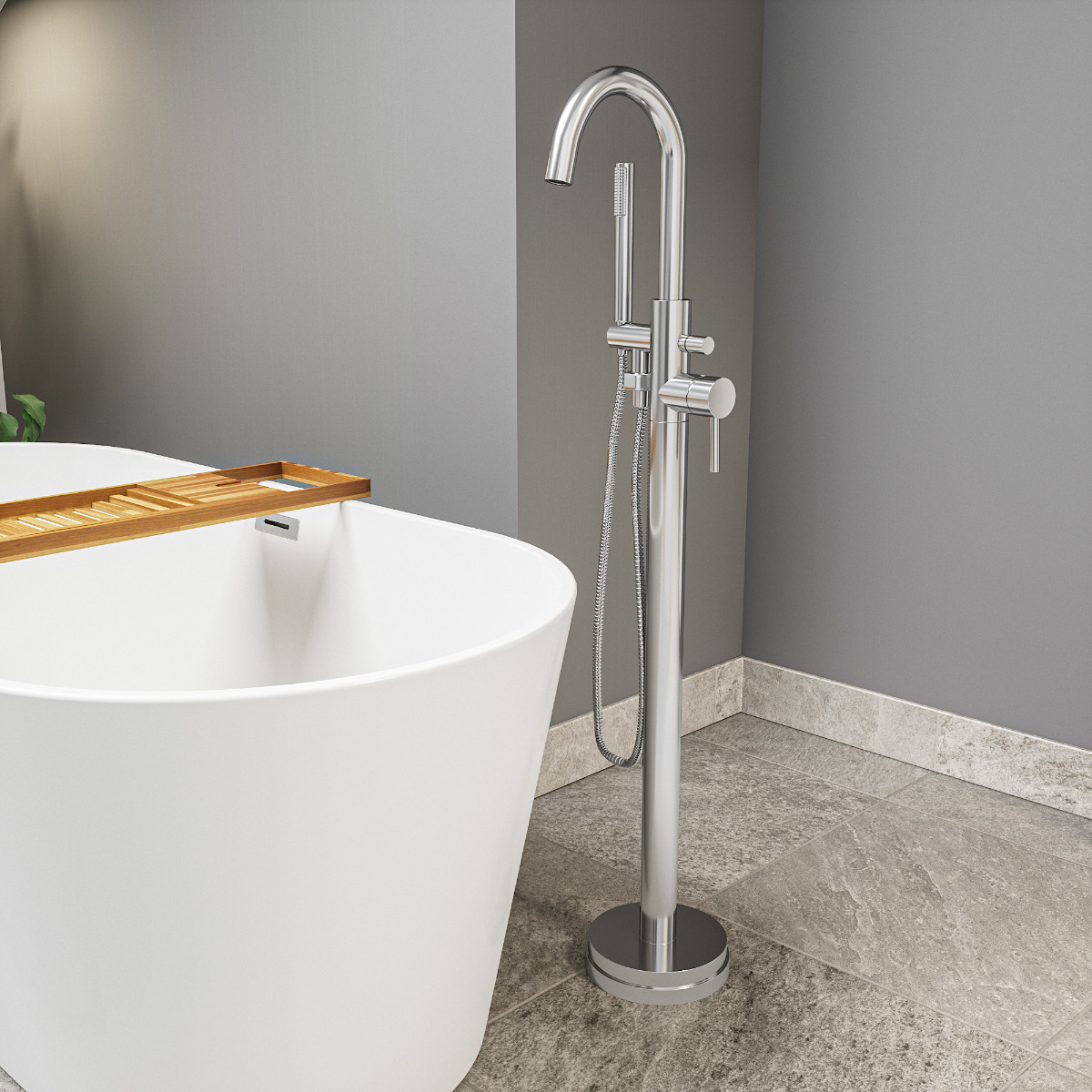 What sets the Darwin Freestanding Bath Tap apart is its discreetly attached shower handset. This thoughtful addition doesn't disrupt the tap's elegant shape; instead, it seamlessly complements its design.