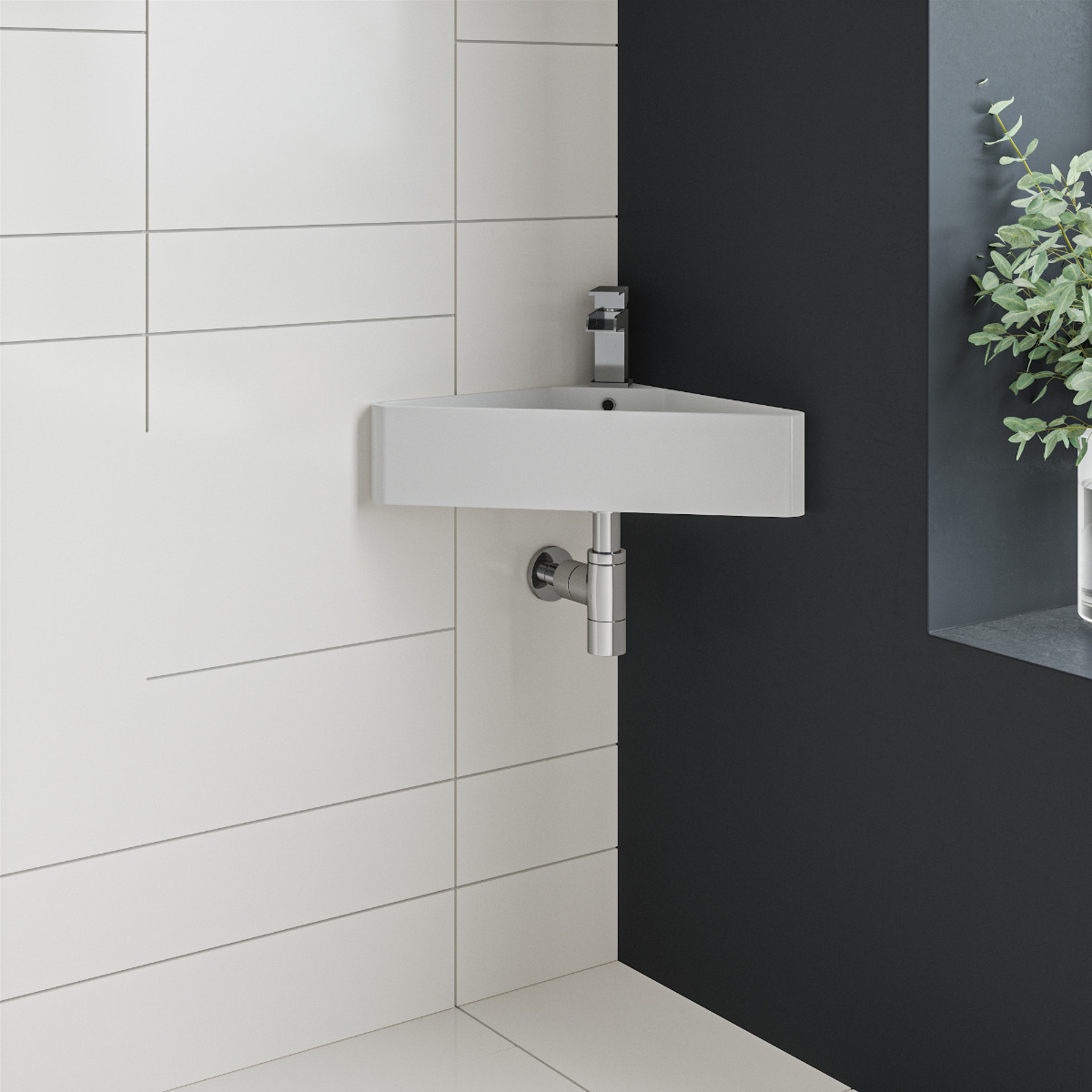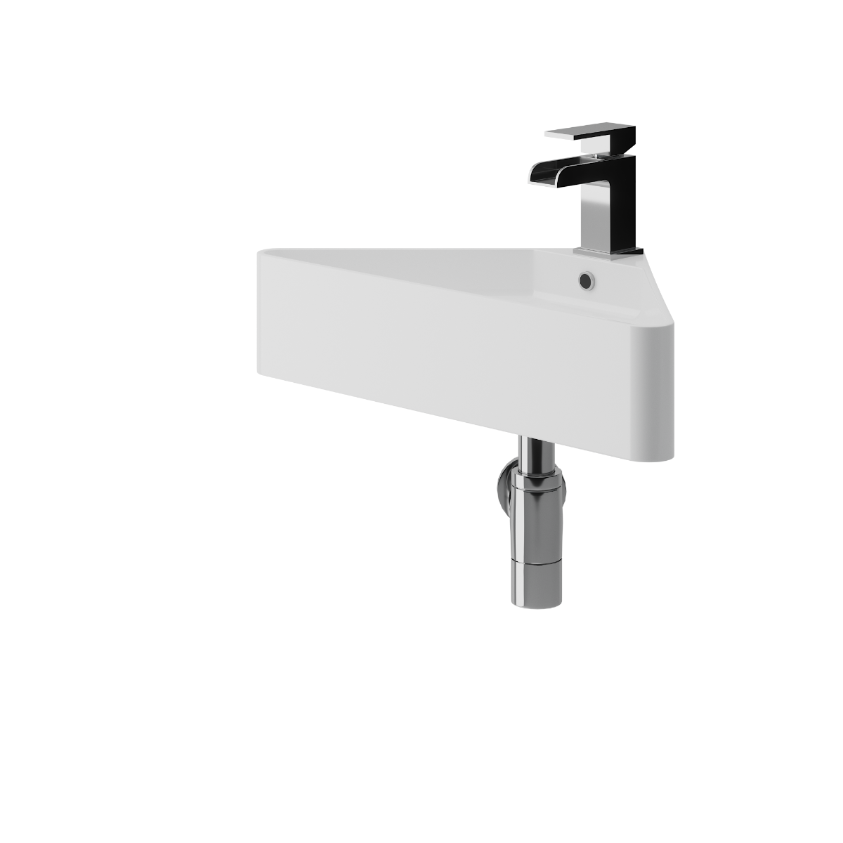 This small wall hung basin sink is a great choice for small bathrooms or cloakrooms where space is restricted. It fit's perfectly in the corner taking up minimal space.