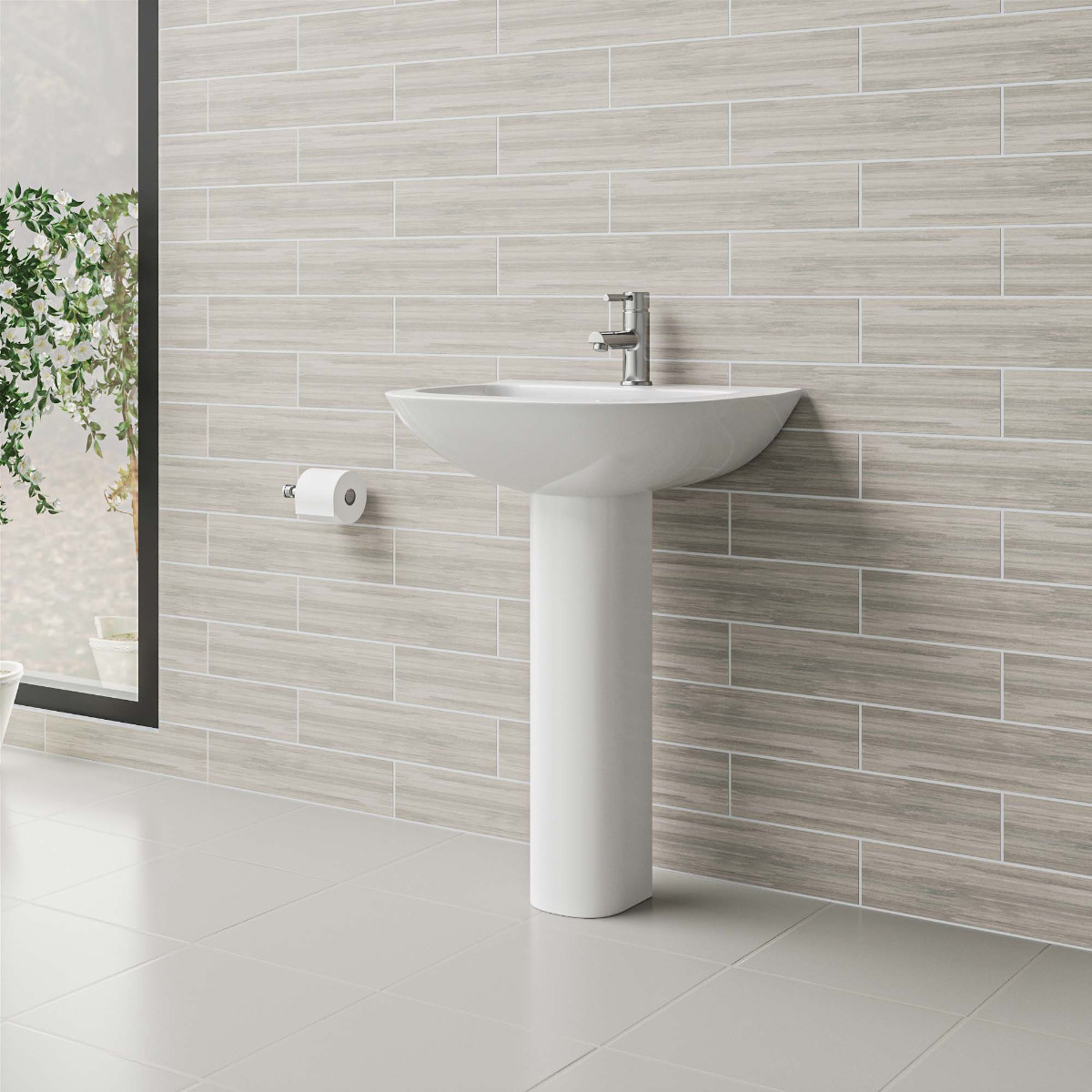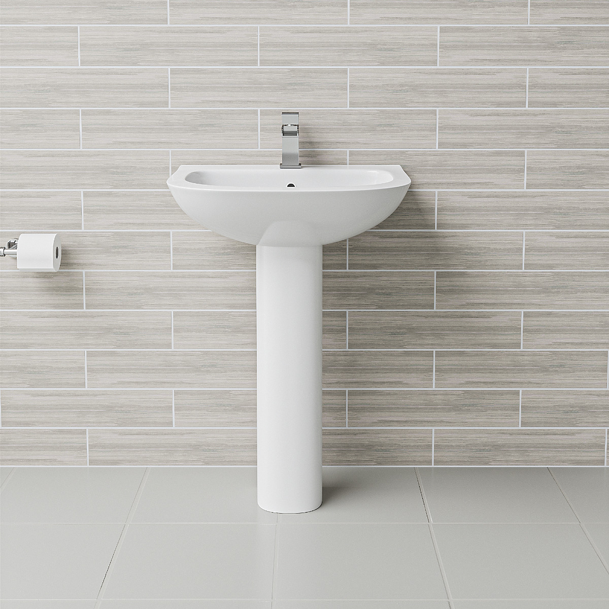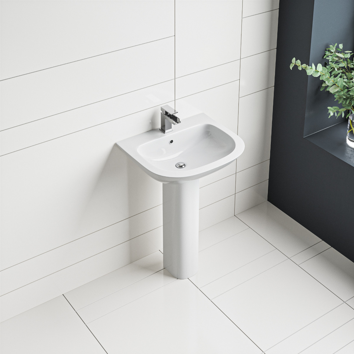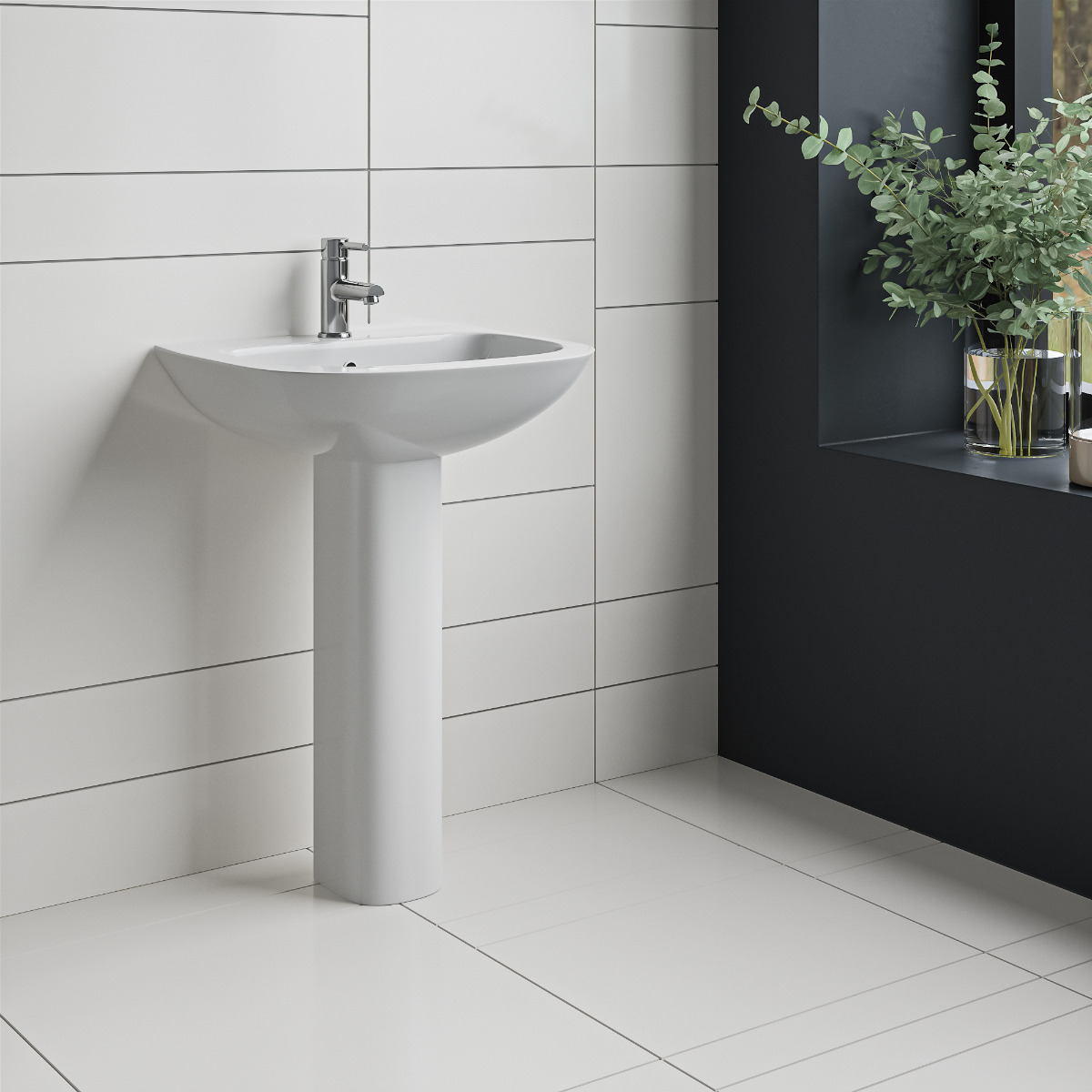 This sleek Morzine pedestal basin features a single-tap hole design with integrated overflow, offering simplicity and style. Manufactured from sturdy ceramic and with a smooth gloss white finish, it adds a contemporary appeal to any bathroom. The full pedestal not only enhances the basin's overall look, it also neatly disguises any unsightly pipework. Opt for this basin to bring a clean, chic look into your bathroom – all while addressing your practical needs with ease.