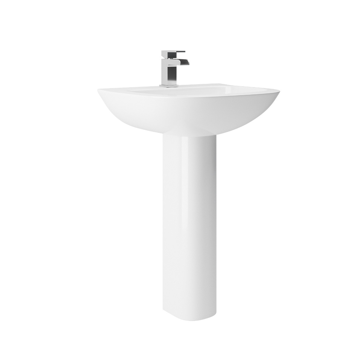 This striking modern pedestal basin is perfectly sized to suit all bathroom sizes and provides a beautiful minimal look with it's gentle curves and white finish.