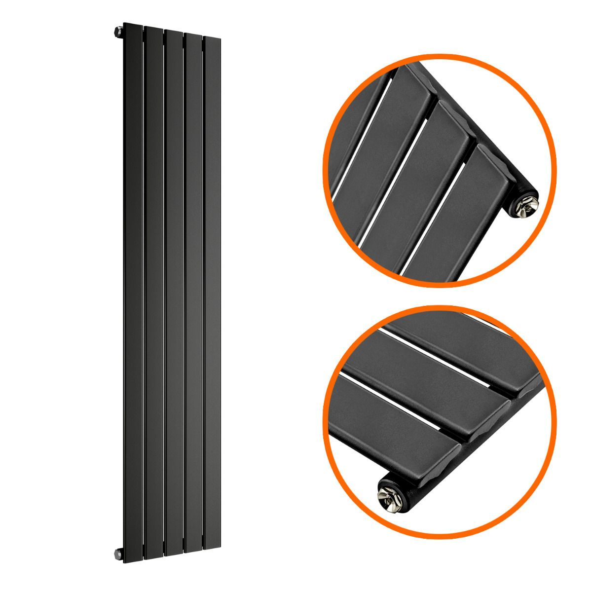1600 x 350mm Black Single Flat Panel Vertical Radiator