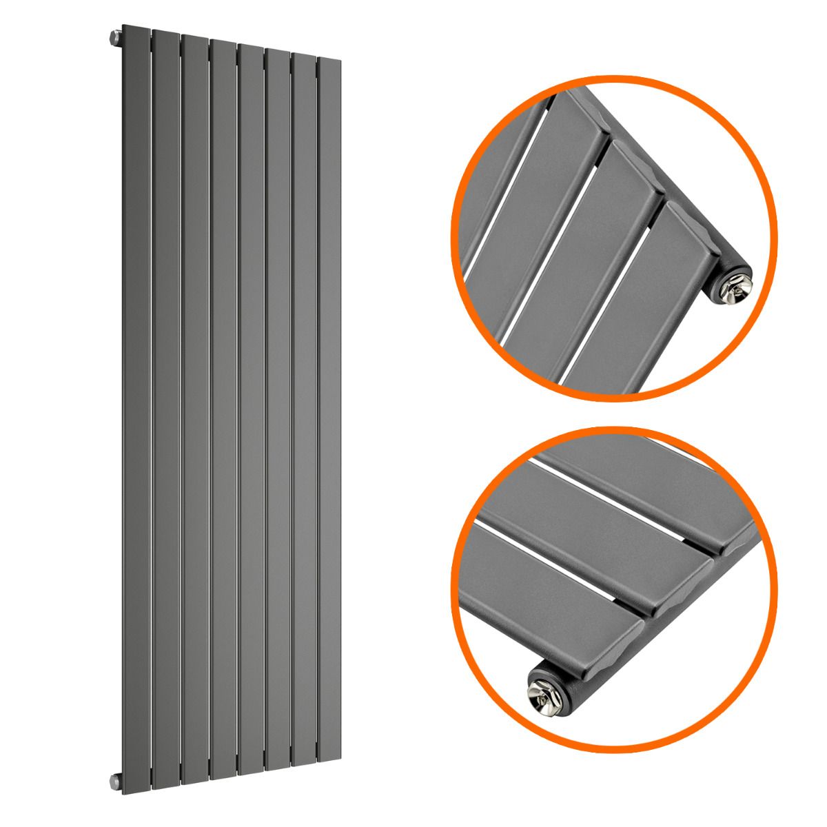 1600 x 560mm Anthracite Single Flat Panel Vertical Radiator