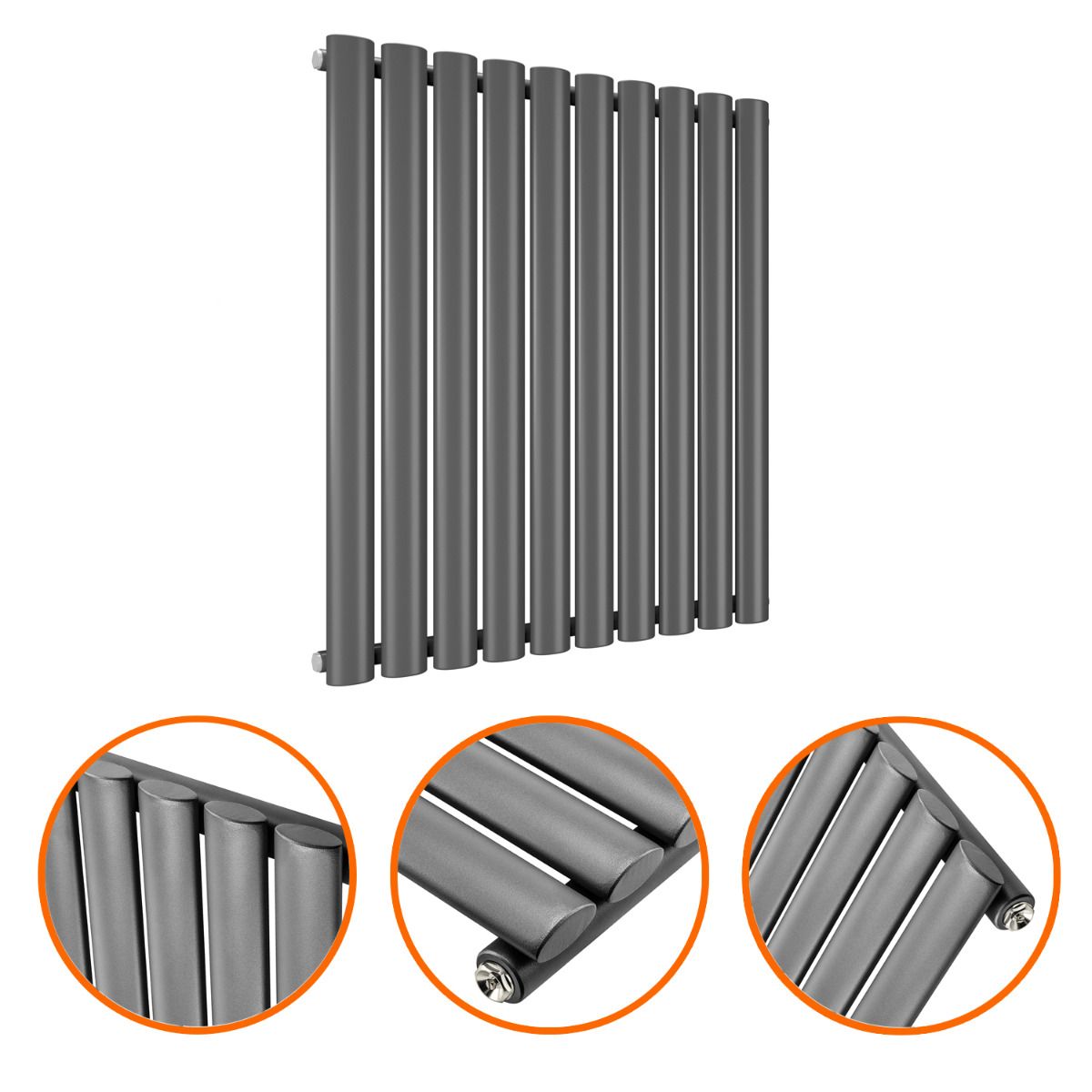 635 x 595mm Anthracite Single Oval Tube Horizontal Radiator