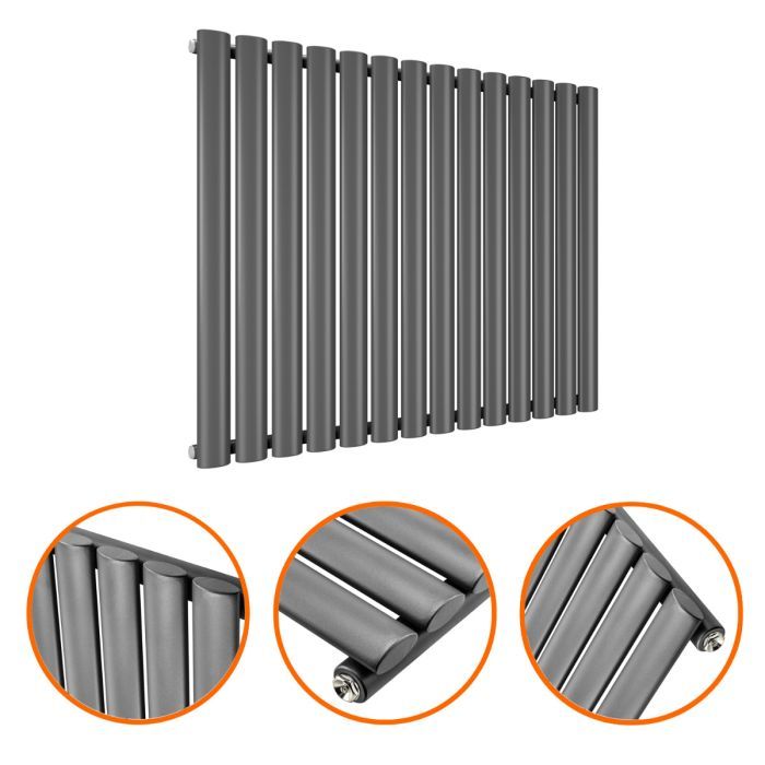 635 x 834mm Anthracite Single Oval Tube Horizontal Radiator