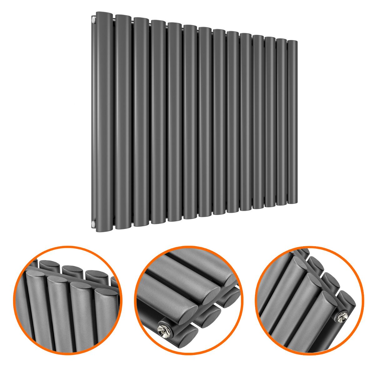 635 x 834mm Anthracite Double Oval Tube Horizontal Radiator