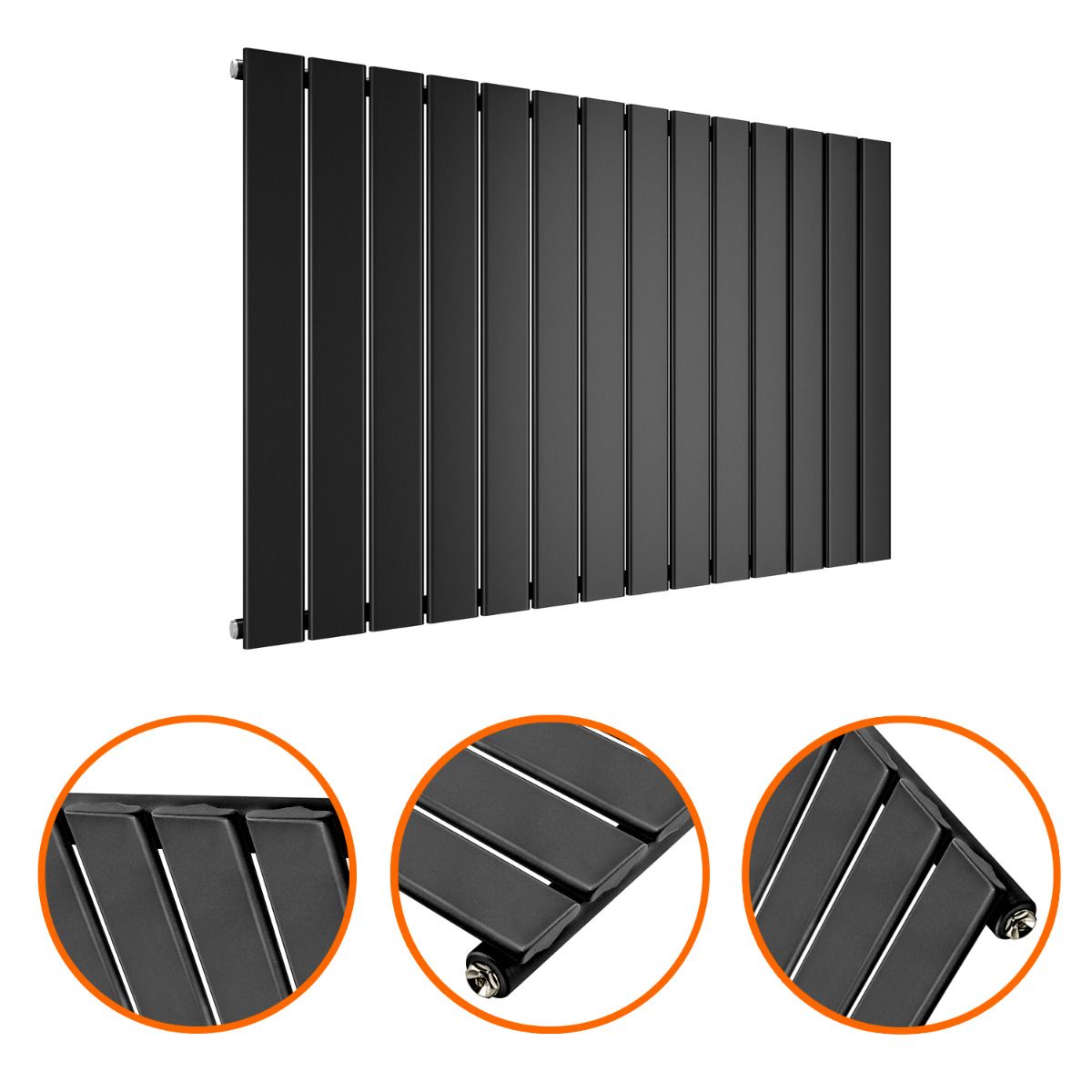 635 x 980mm Black Single Flat Panel Horizontal Radiator