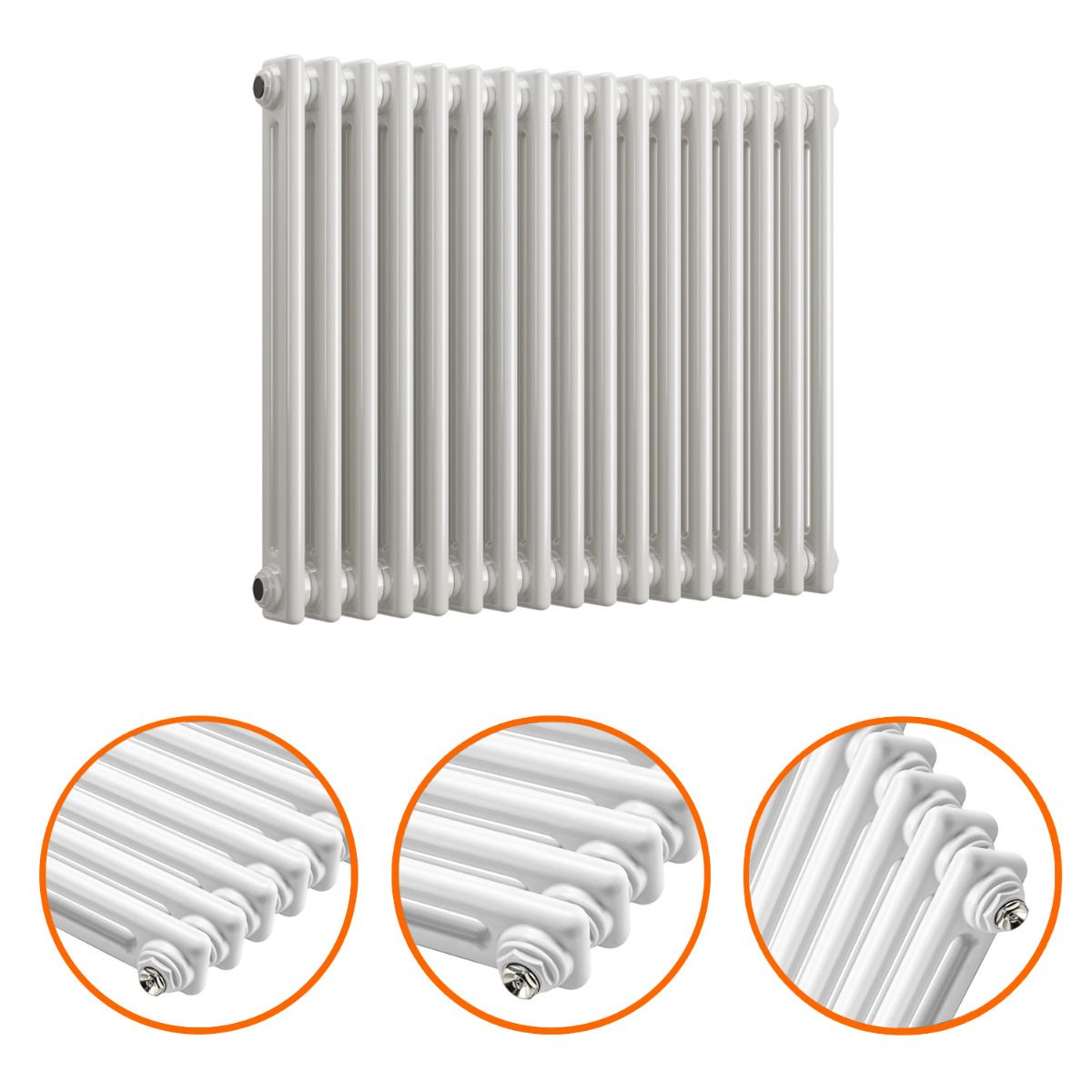 600 x 788mm White Horizontal Traditional 2 Column Radiator