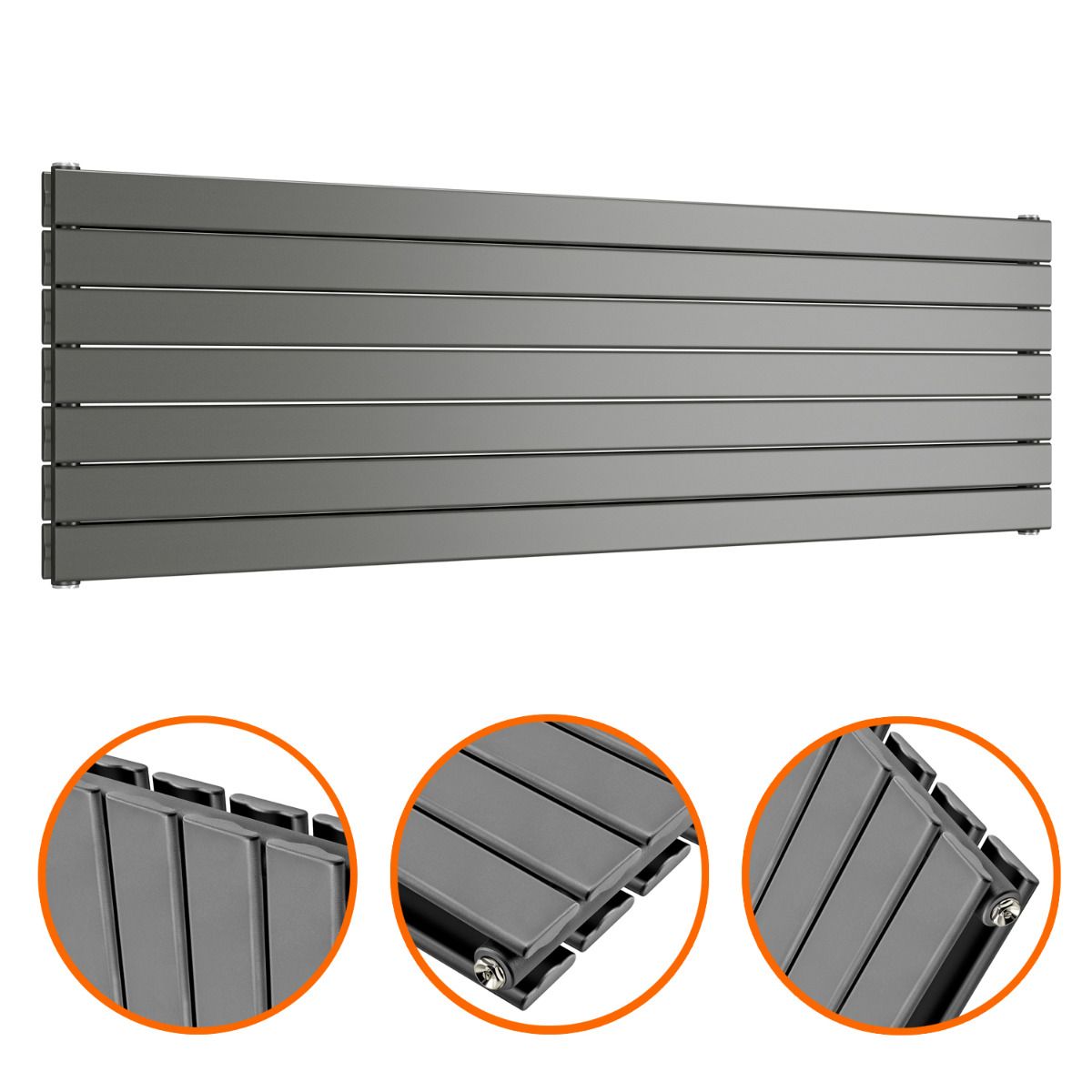 490mm x 1600mm Anthracite Double Flat Panel Horizontal / Landscape Radiator