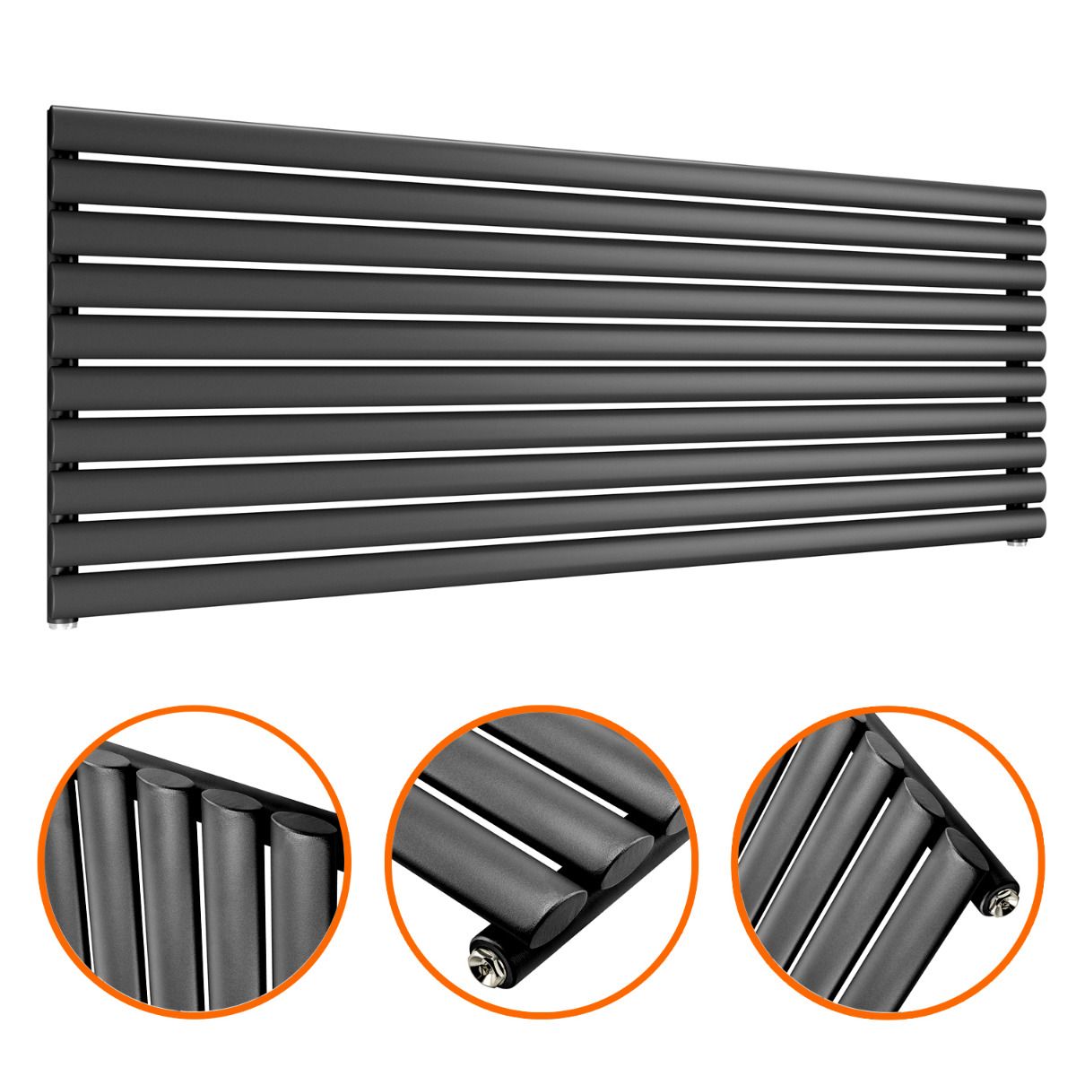 590mm x 1600mm Black Single Oval Tube Horizontal / Landscape Radiator