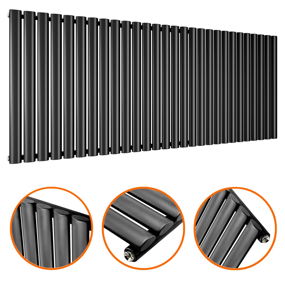 635 x 1652mm Black Single Oval Tube Horizontal Radiator