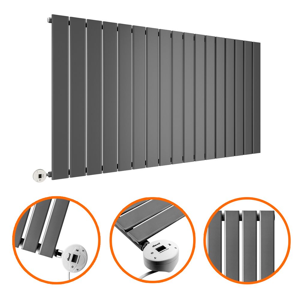 635 x 1190mm Electric Anthracite Single Flat Panel Horizontal Radiator