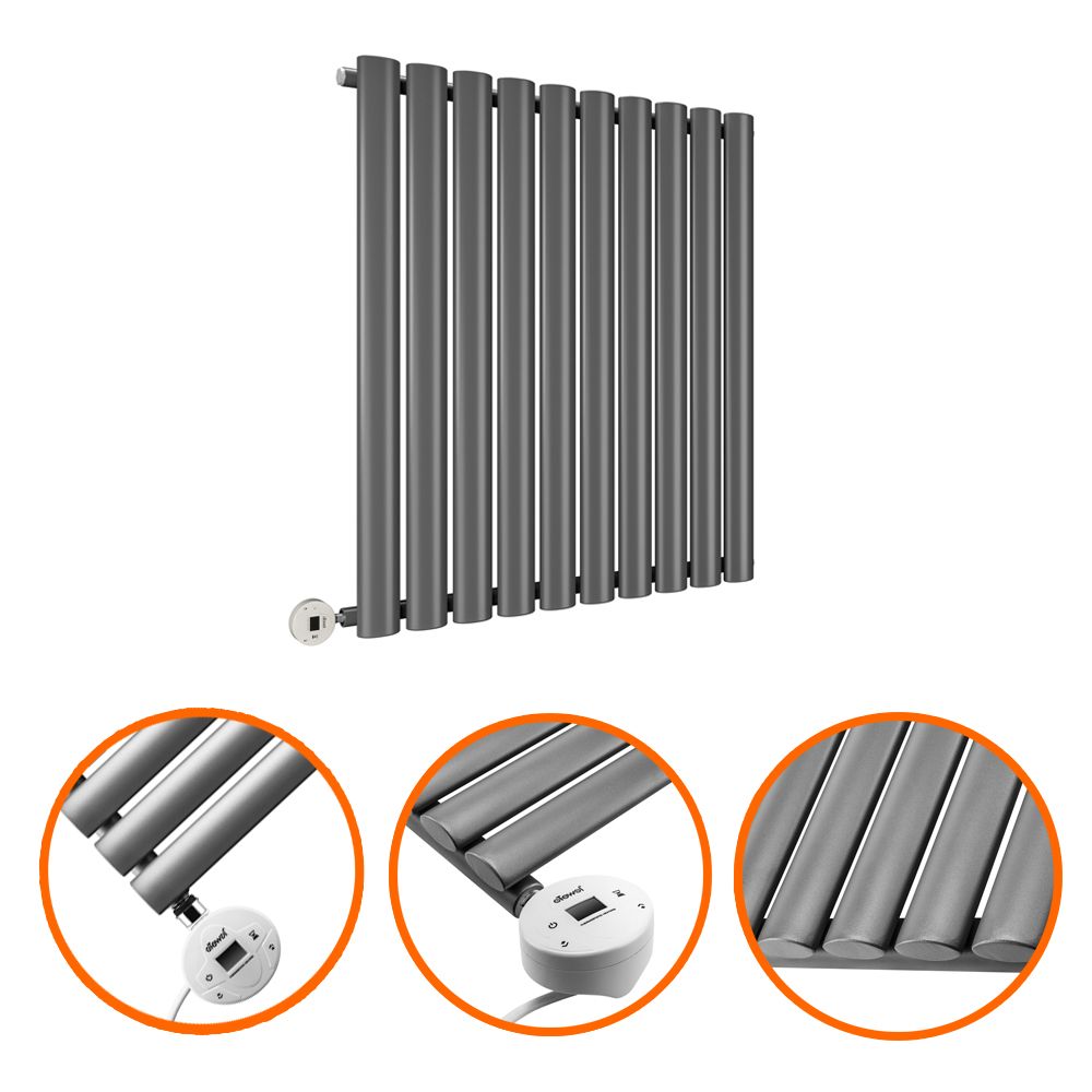 635 x 595mm Electric Anthracite Single Oval Panel Horizontal Radiator