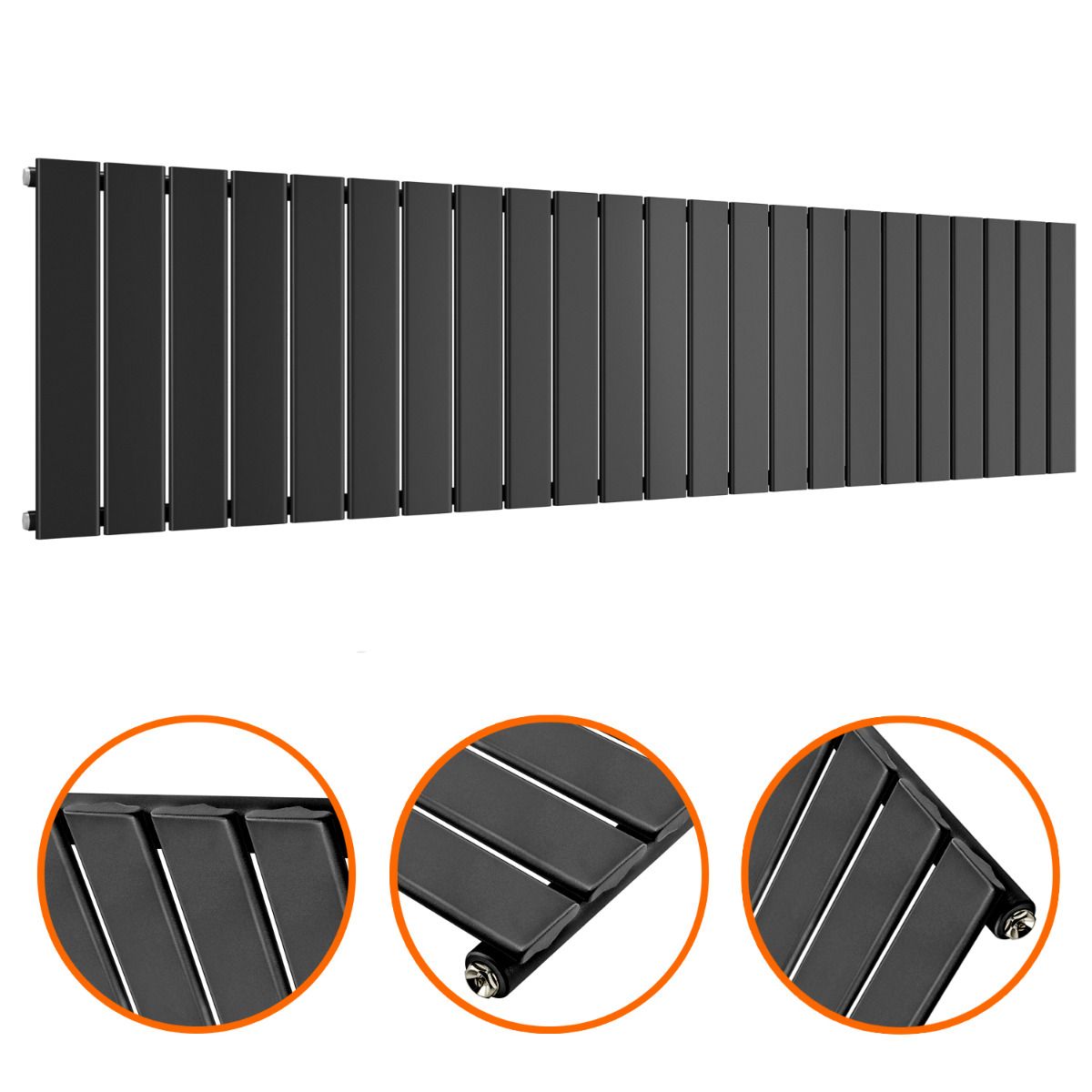400 x 1610mm Black Single Flat Panel Horizontal Radiator