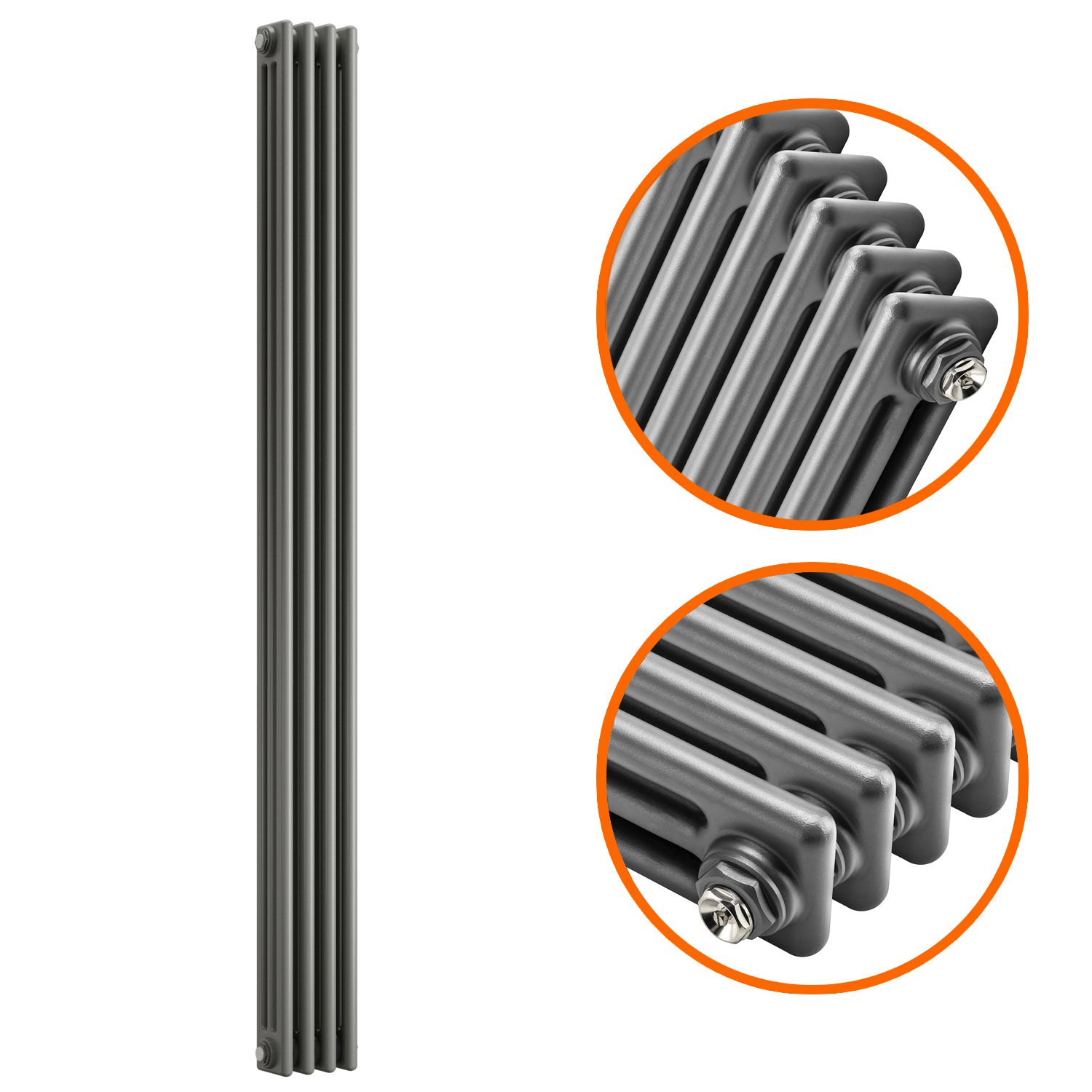 1500 x 203mm Anthracite Vertical Traditional 3 Column Radiator