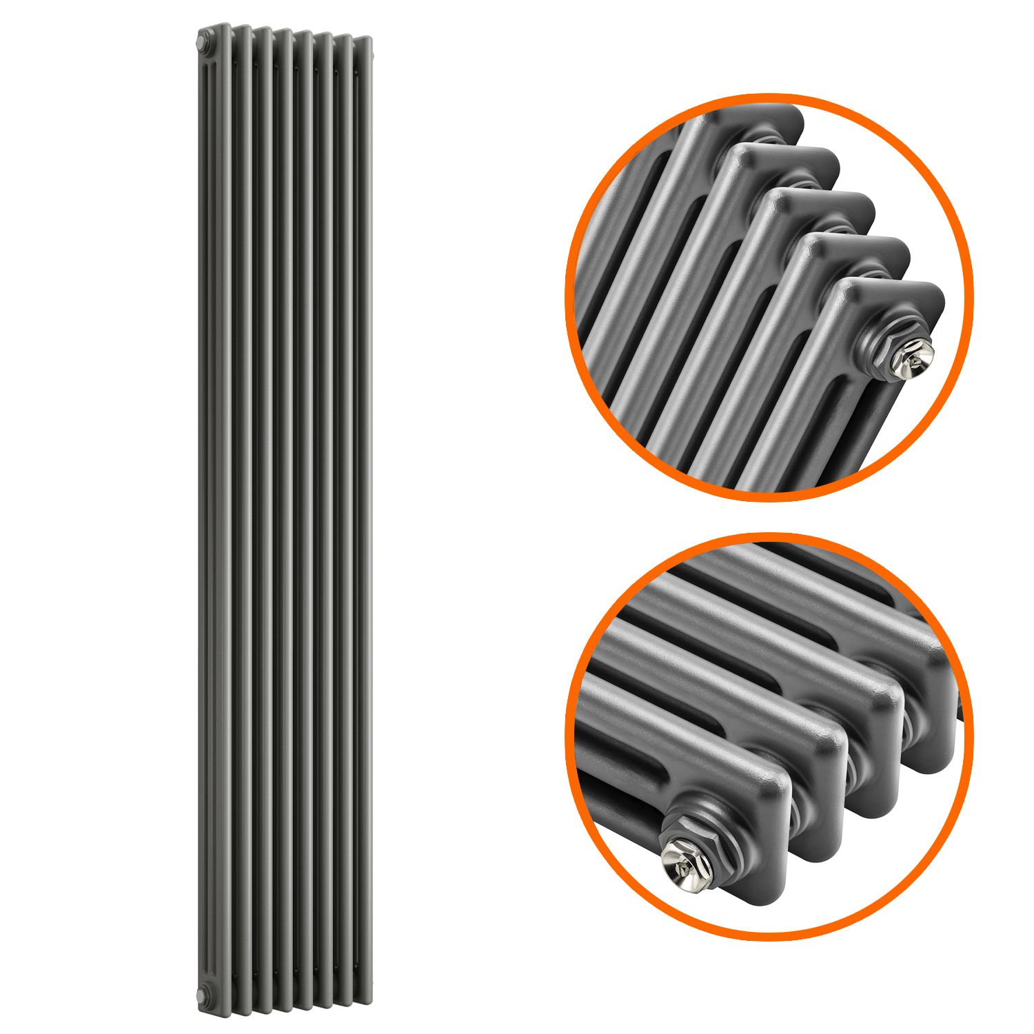 1500 x 383mm Anthracite Vertical Traditional 3 Column Radiator