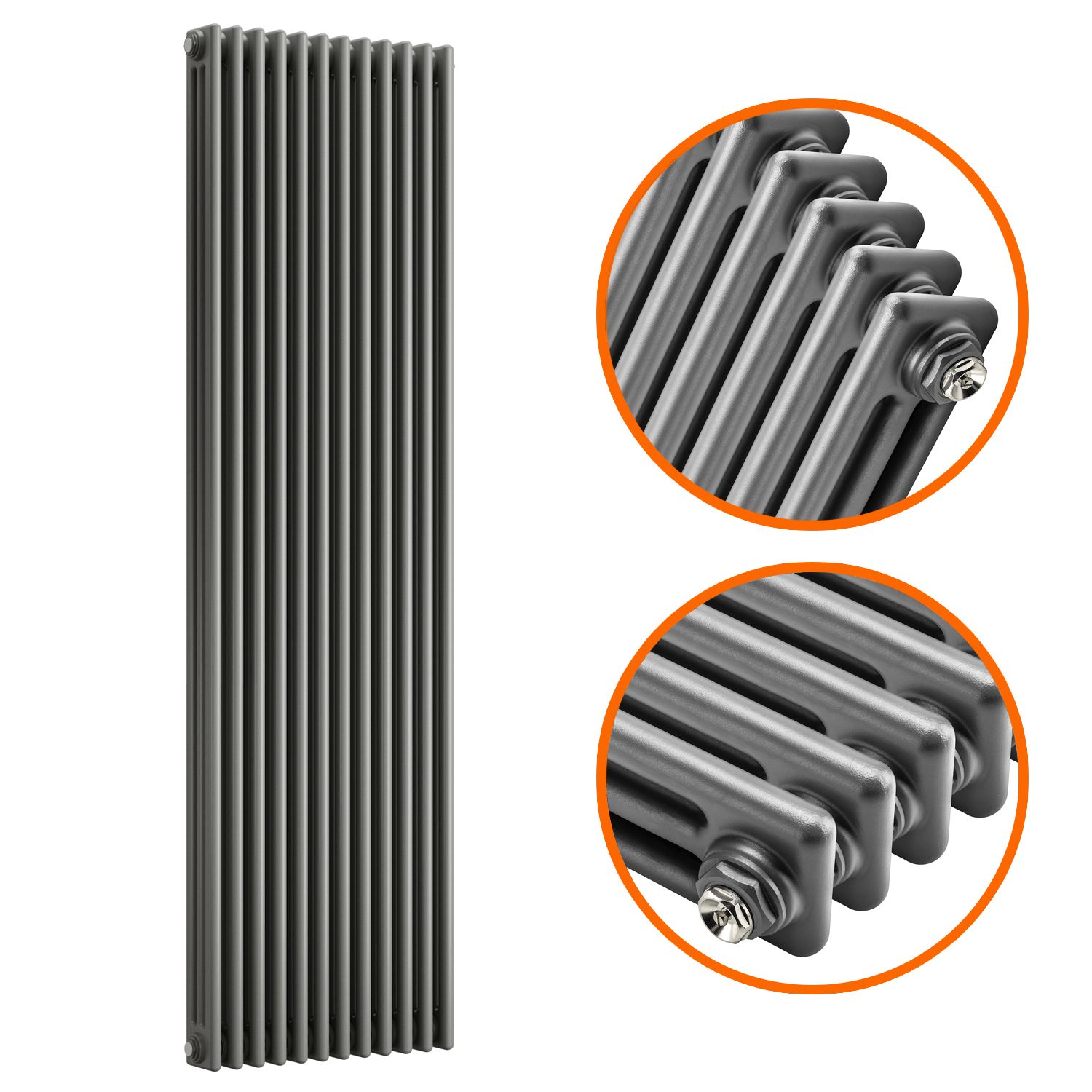 1500 x 560mm Anthracite Vertical Traditional 3 Column Radiator