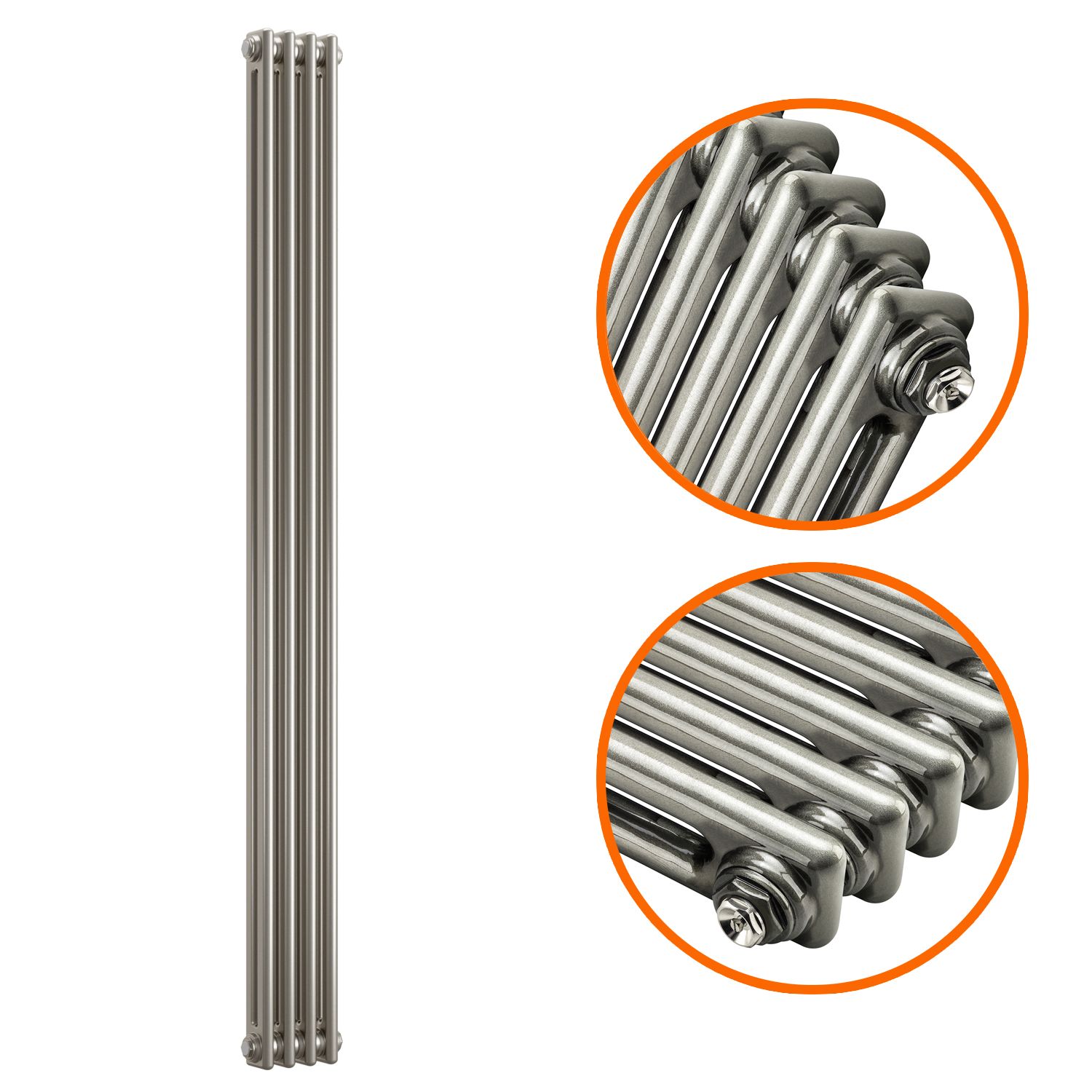 1500 x 203mm Raw Metal Lacquered Vertical Traditional 2 Column Radiator
